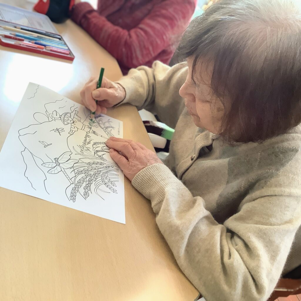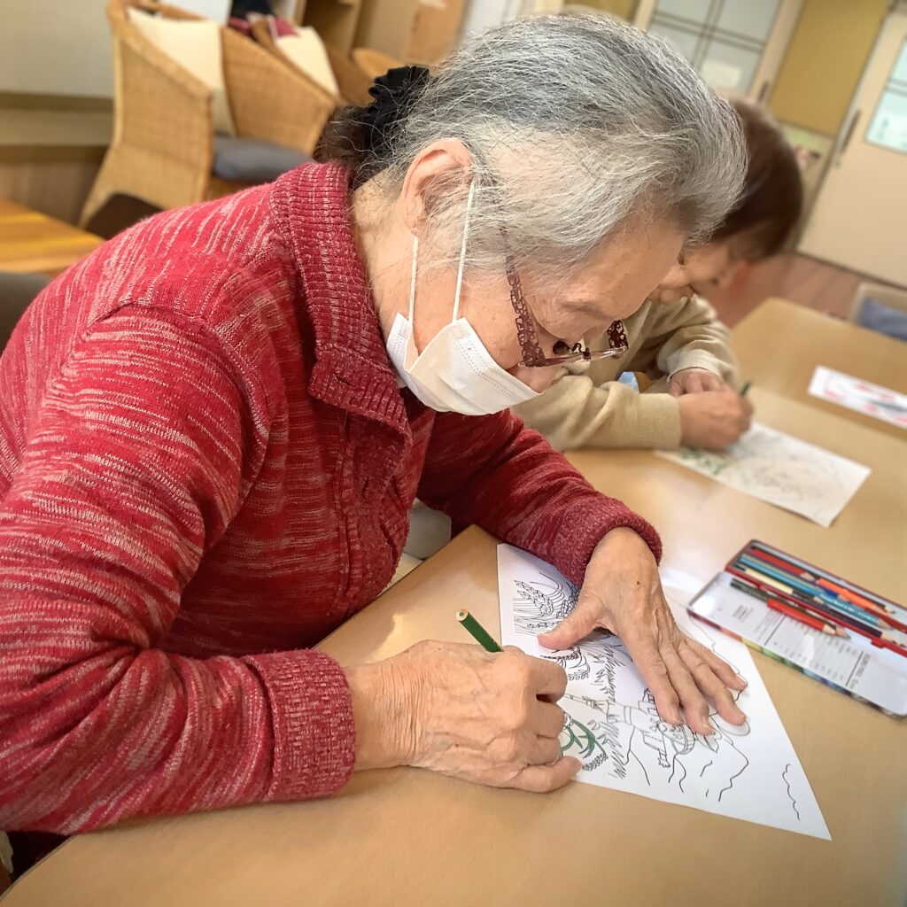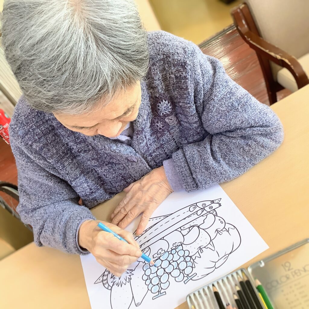 ハーモニー松長では、ぬりえが大人気!