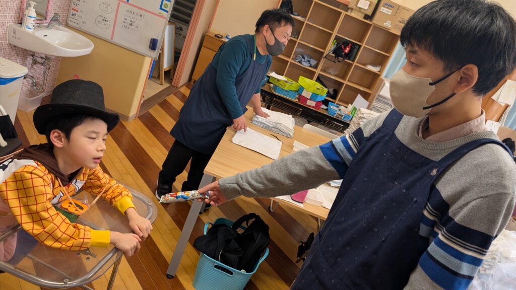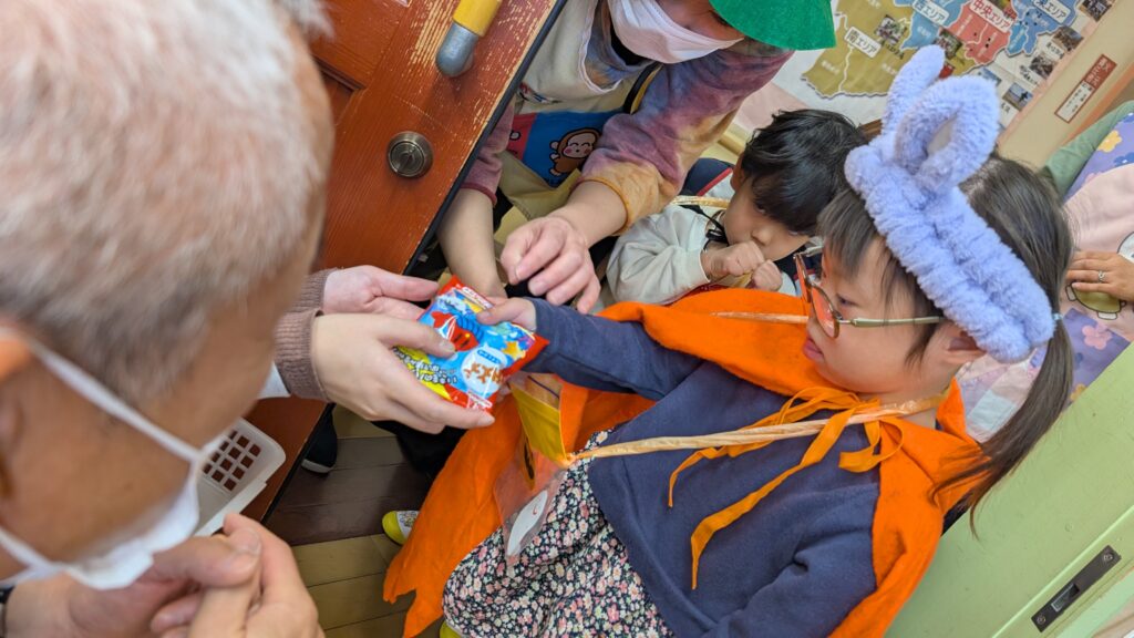 それぞれのお部屋に行って、みんなからお菓子をもらいました。