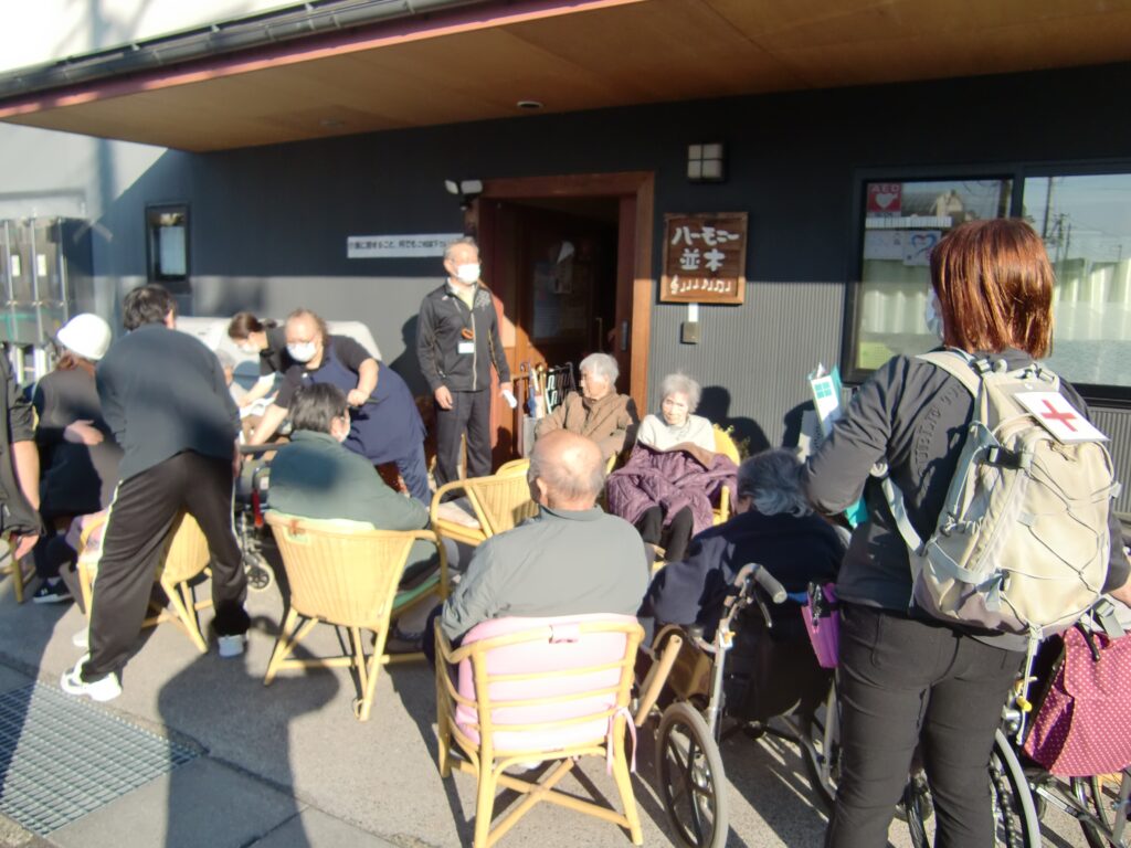 介護施設では、消防法に基づき年2回以上の避難訓練が義務付けられており、ハーモニー並木では11月に2回目の避難訓練を