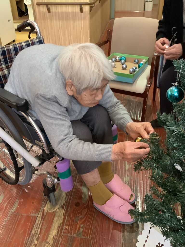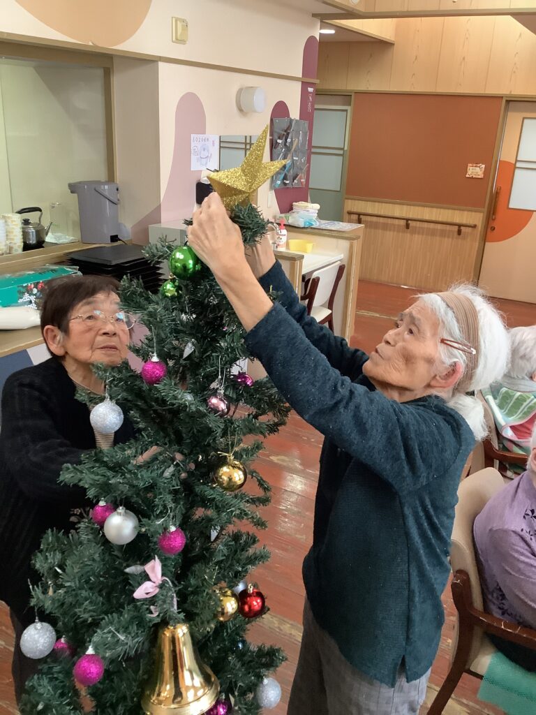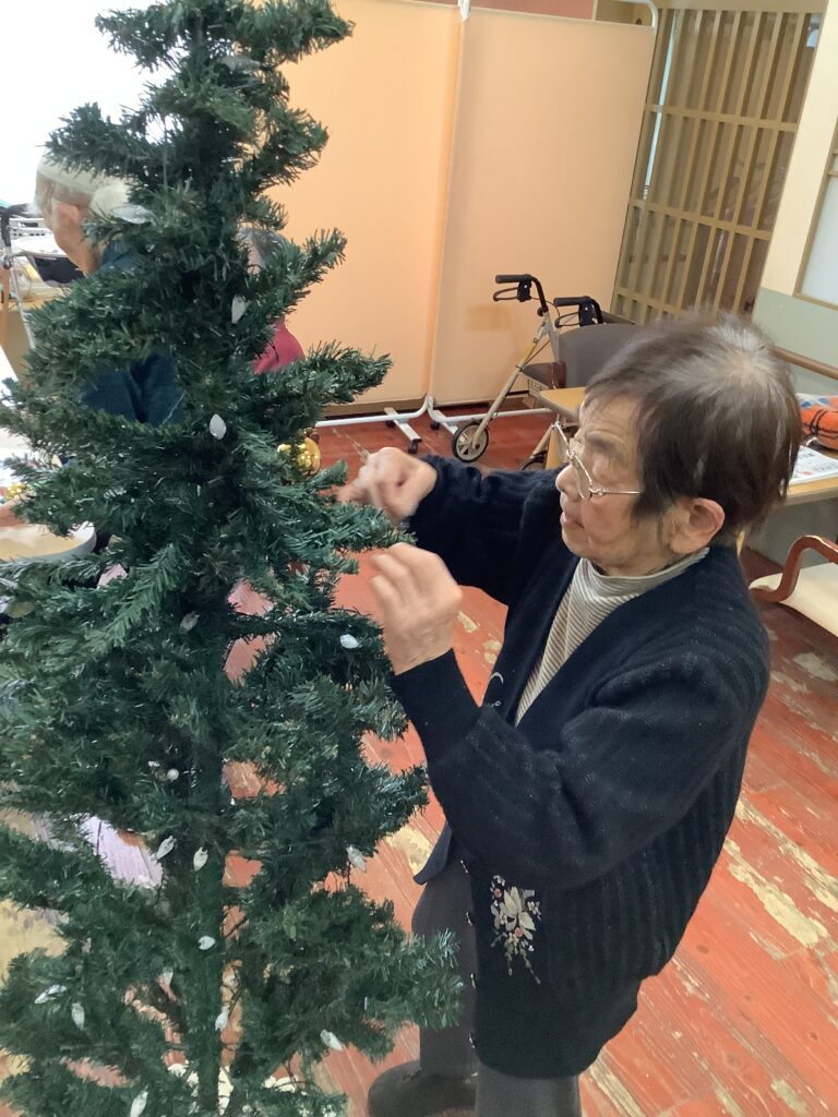 お客様と一緒にクリスツリーを出したりや飾り付けを行いました。