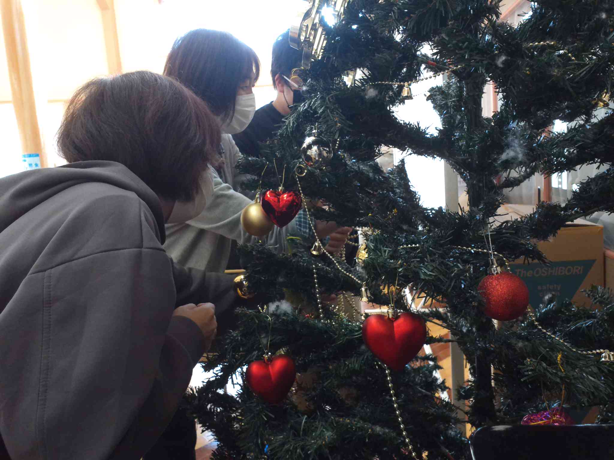 皆さんで協力しながら幹を組み立て、背丈よりも高いツリーが完成!!
