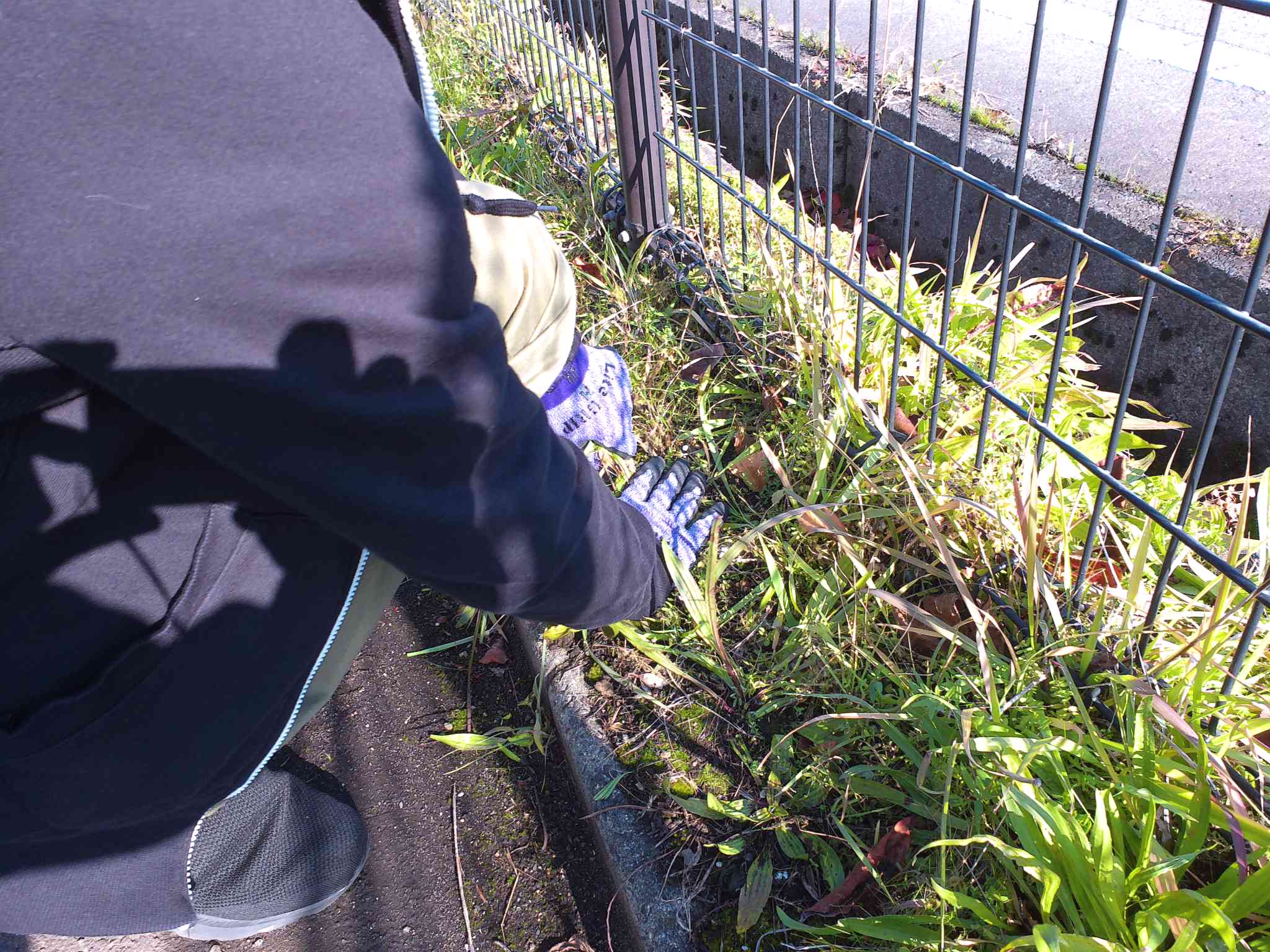 始めて除草作業に参加し、仕事に合わせた服装や、しゃがんでの作業のため、