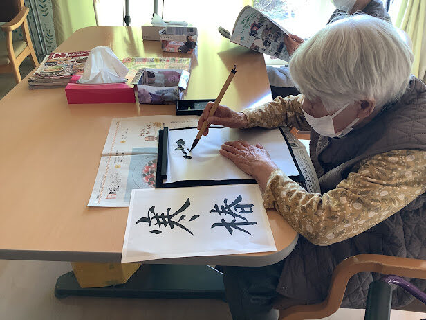 まずは書道!(^^)!こんなんでいいかい?ちょっぴりドキドキしながらも一生懸命に書きあげました(^^)v