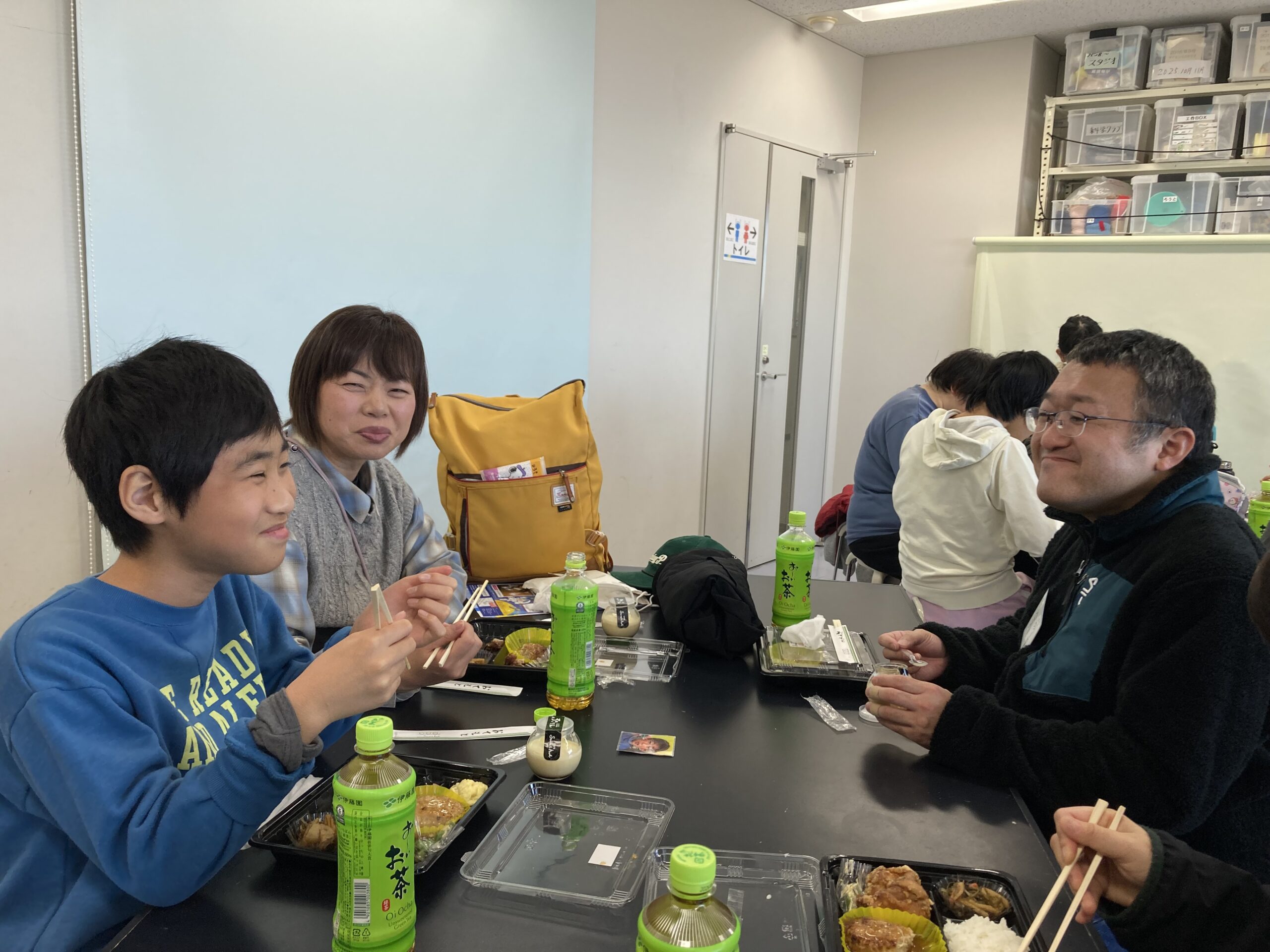 見学の後は科学館の会議室をお借りして、お楽しみのお昼ご飯です。