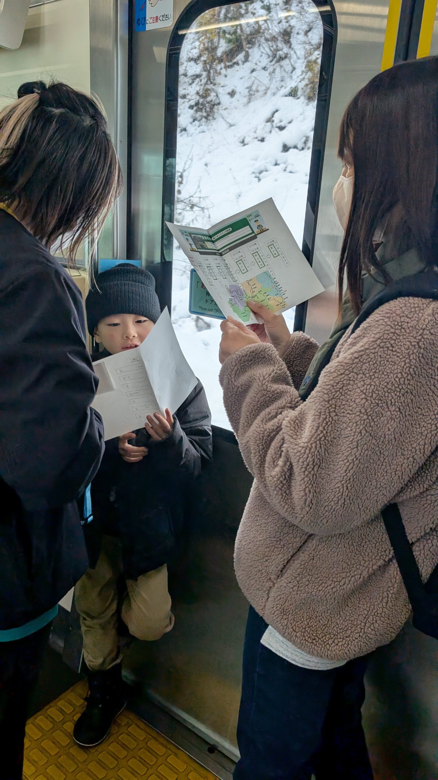 車中では、職員が準備した駅名クイズにも挑戦しました。