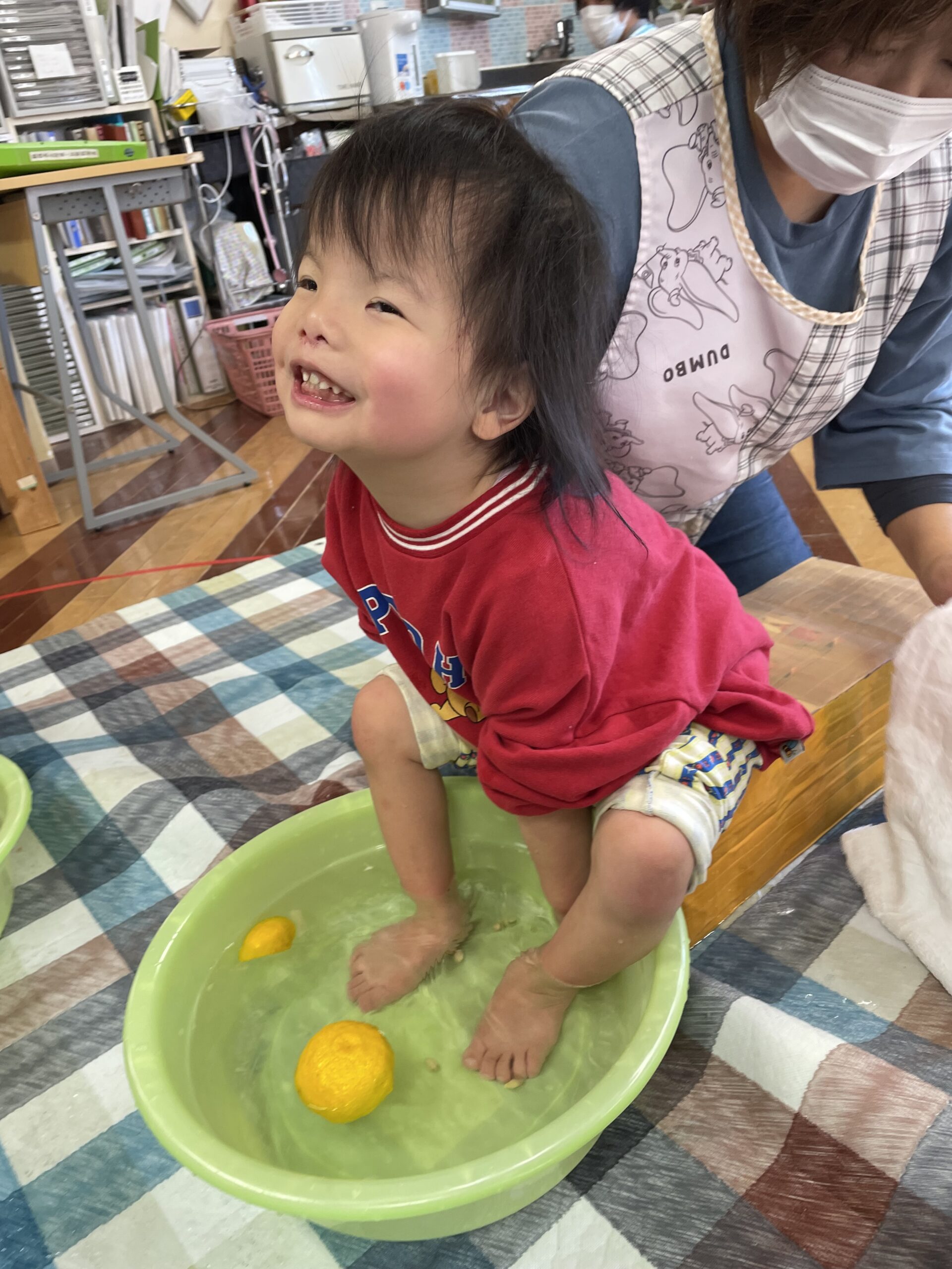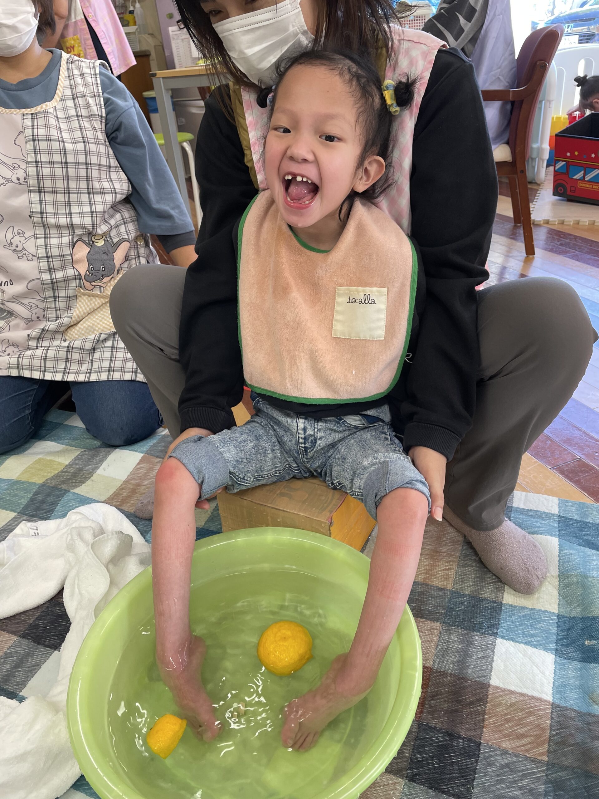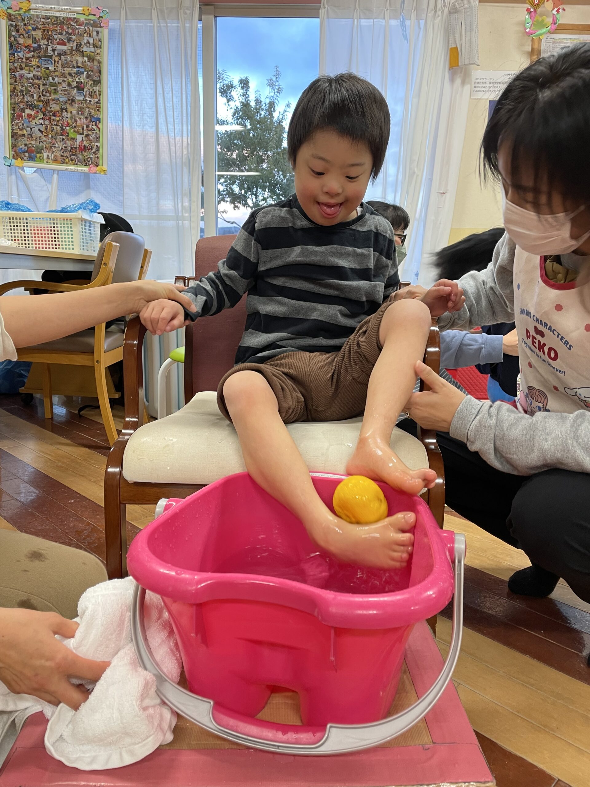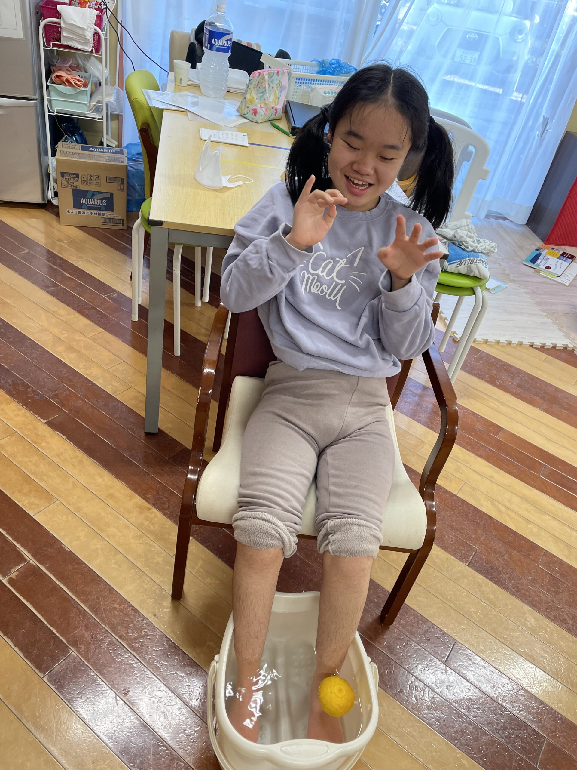 ゆずを手に持ったり、足で転がしたり・・・そして香りを楽しみながら、リラックス足浴タイム♨