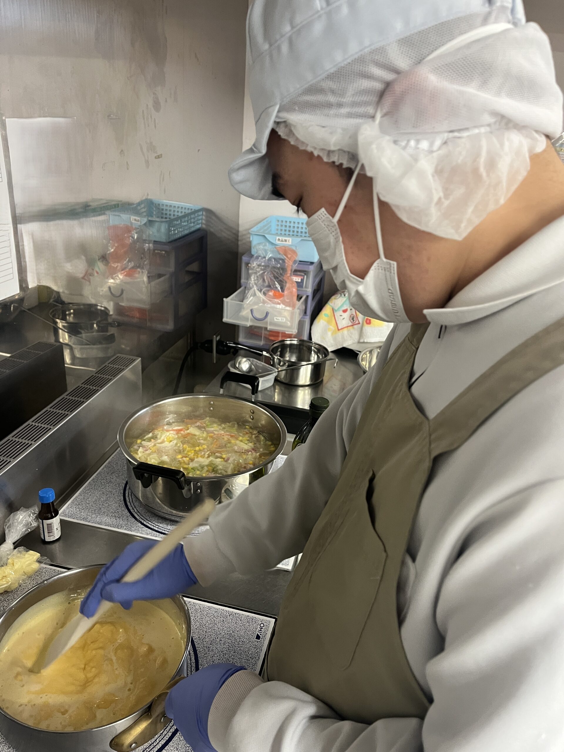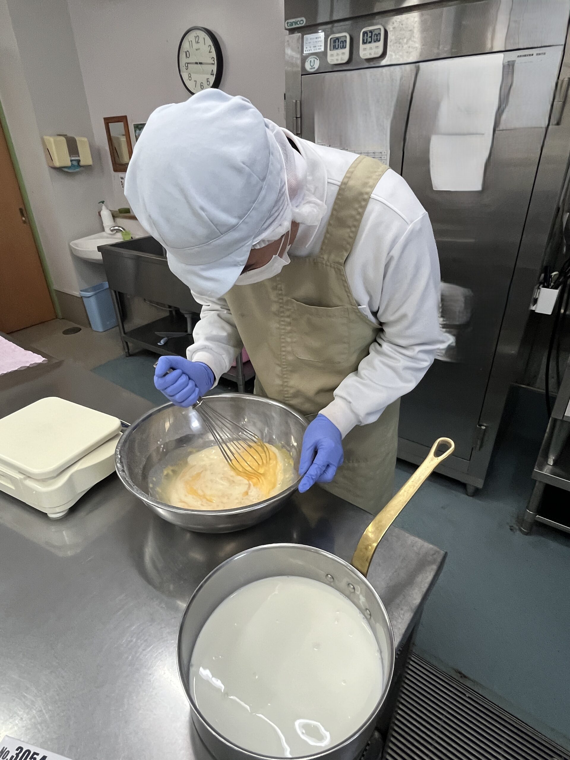 大好評の米粉のクリームぱんのカスタードは食品加工担当で手作りです♪