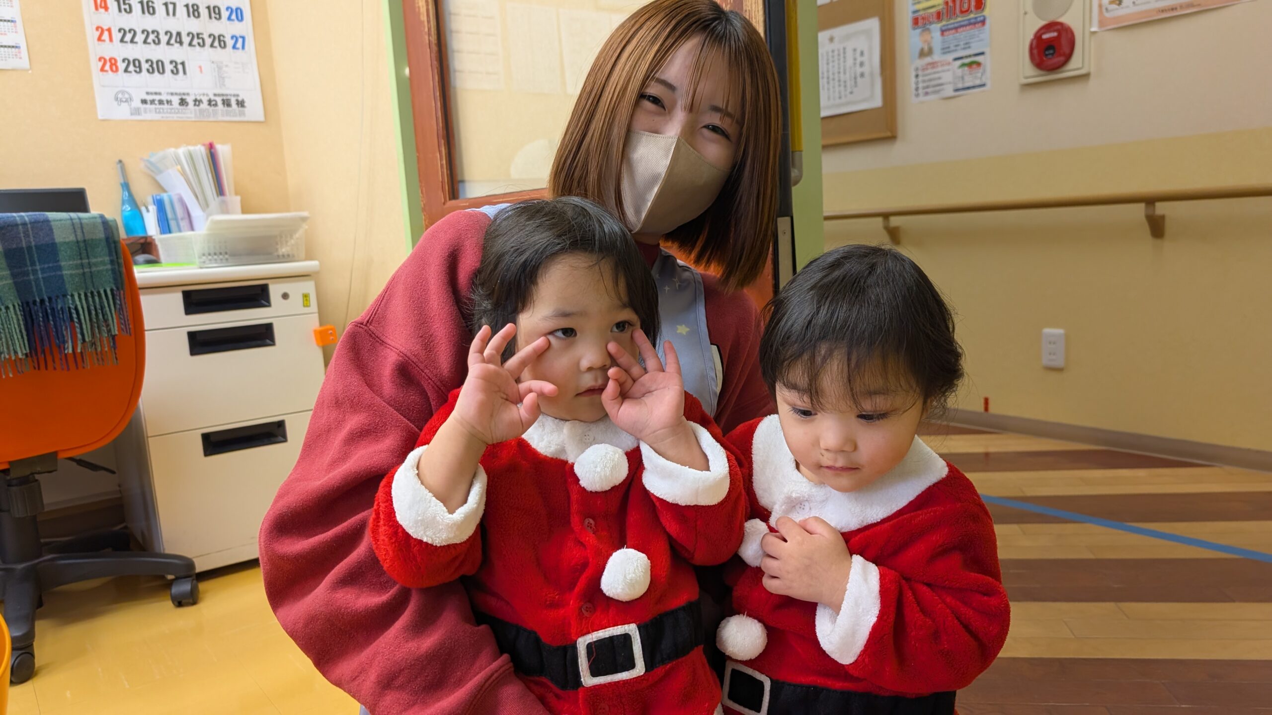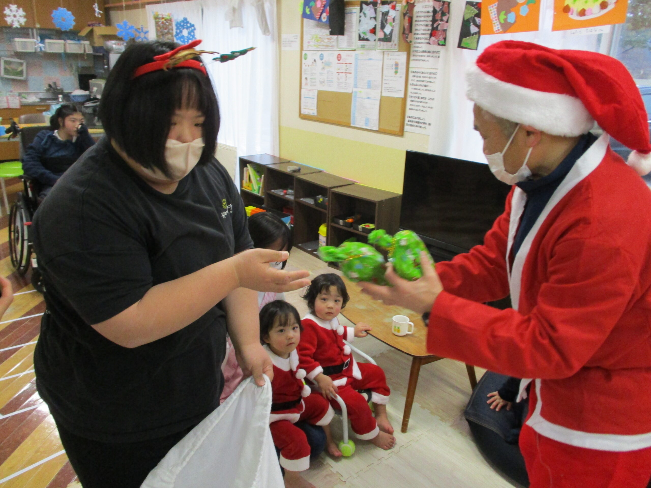 サンタさんからクリスマスプレゼントをもらい、たくさんの笑顔が溢れていました♪