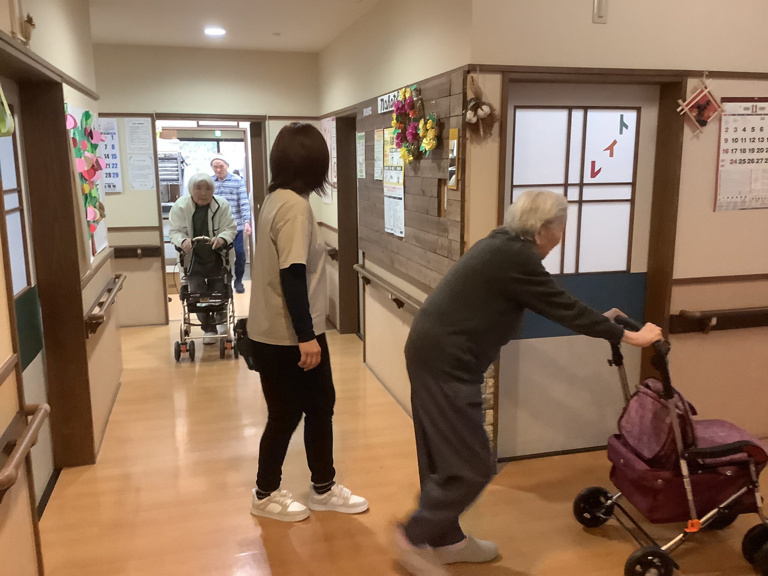 皆でお散歩!? 【ハーモニー中田】 ハーモニー中田 2026年1月7日2025年11月11日 11月に入り、外の風が少し寒くなってきたしたね。 ハーモニー中田では、 定期的に、みんなで施設内をお散歩をしています。 これからもっと寒くなるので、施設内の散歩を お客様と職員の運動を兼ねて続けていきたいと思います。