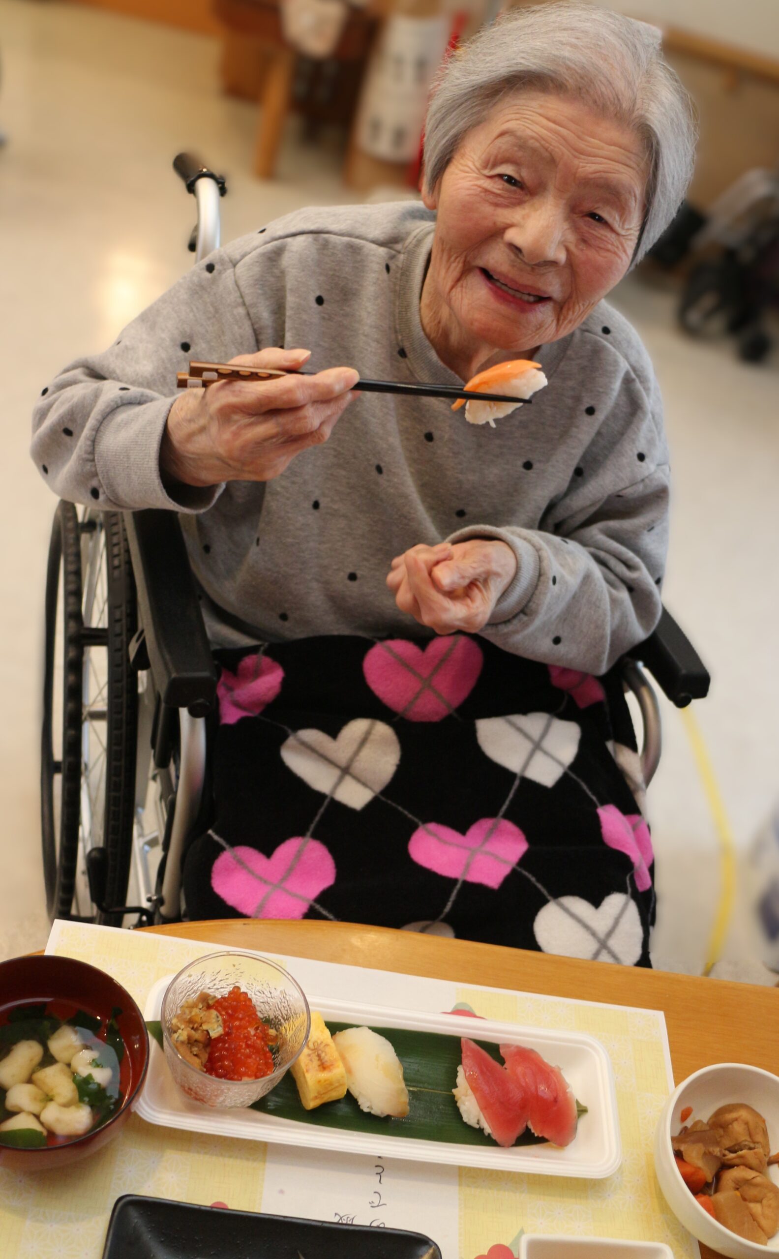 昼食には、お誕生日を迎えられたお客様のリクエストにお応えし、お寿司を握らせていただきました。