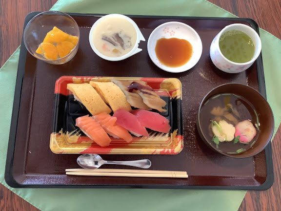 お寿司に茶碗蒸し、お吸い物そしてデザートはみかんゼリー(^^)v