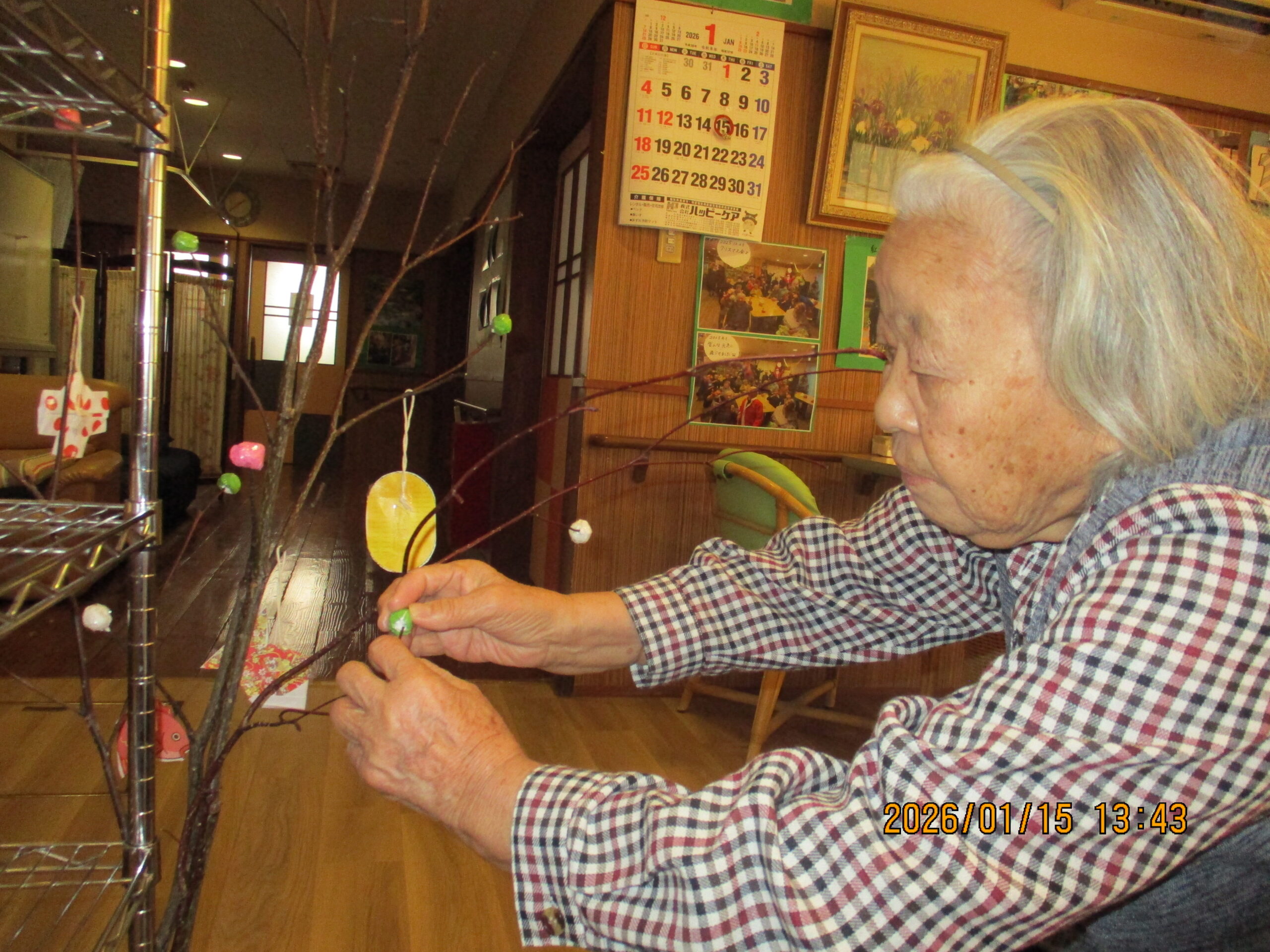 ハーモニー並木では2026年も皆様が健康で過ごせるよう、願いを込めて「団子差し」をしました。