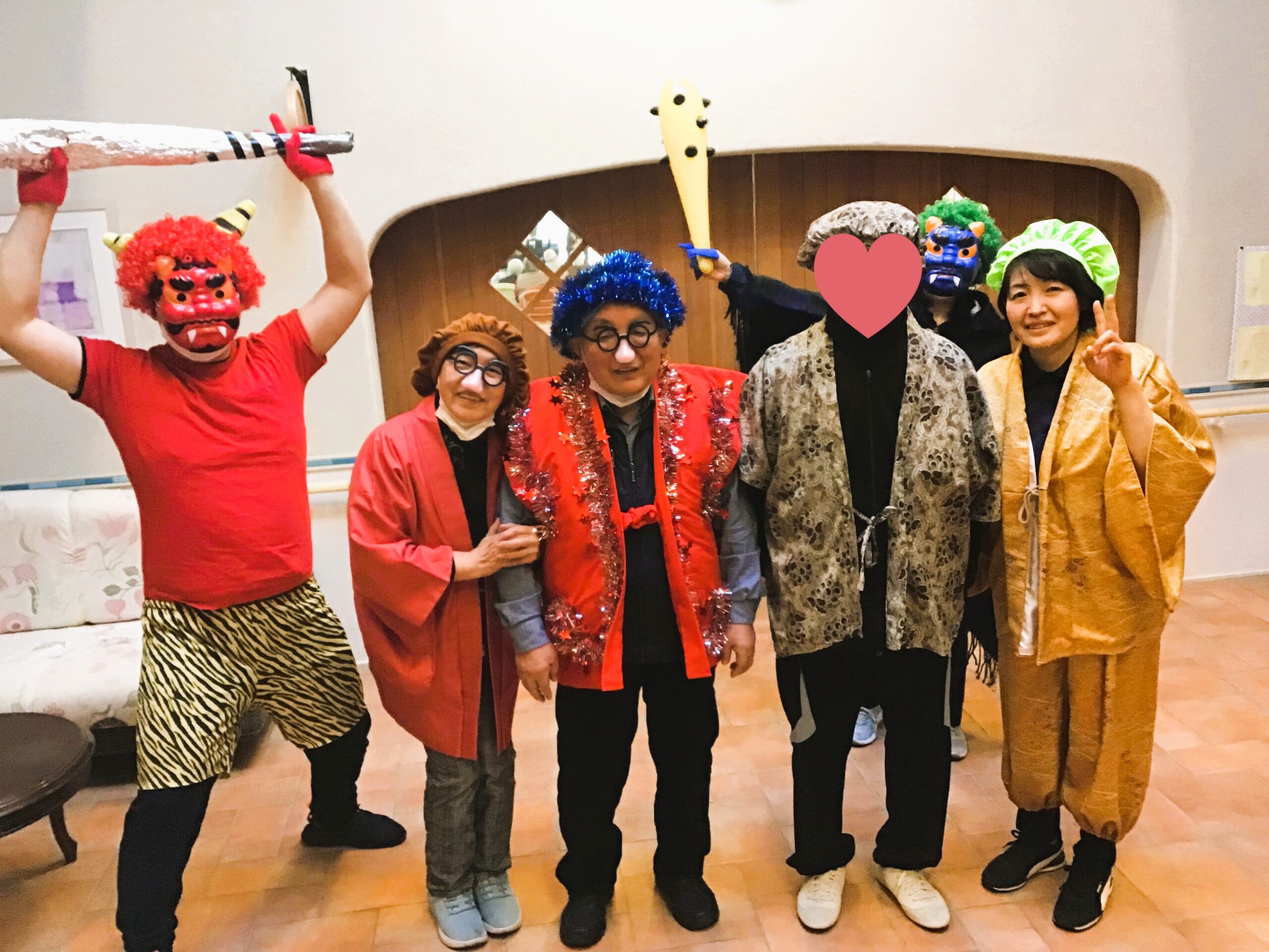 デイサービスでも、2月3日の午後のレクリエーションの時間に豆まきをしました!