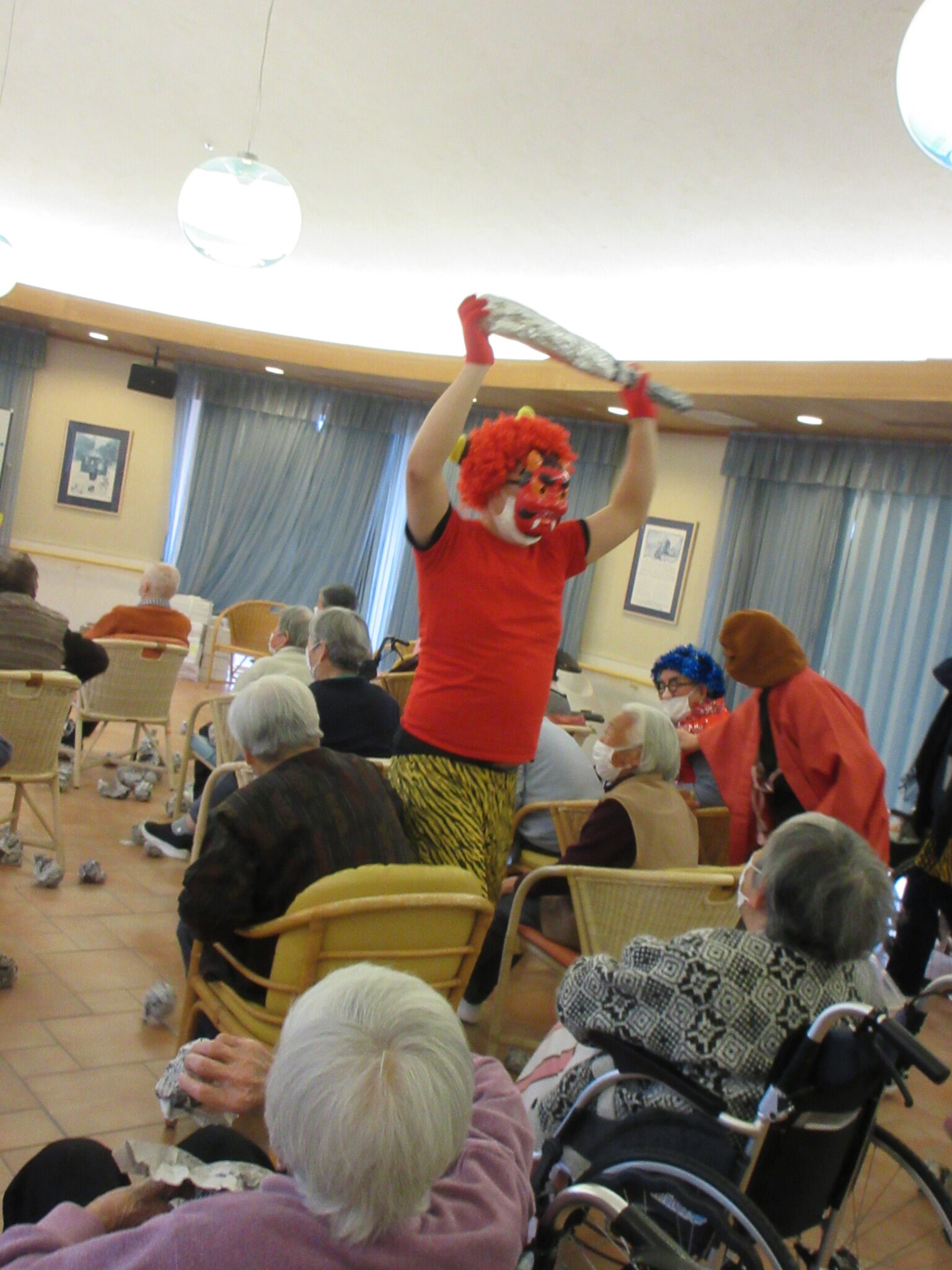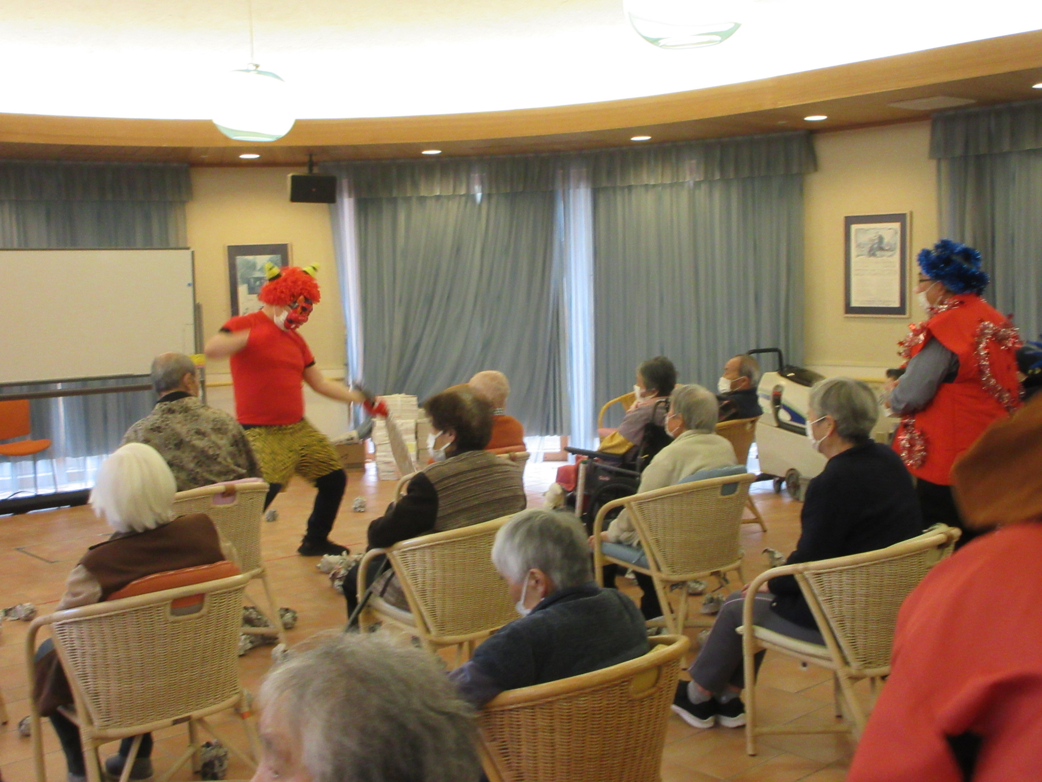 デイサービスでも、2月3日の午後のレクリエーションの時間に豆まきをしました!