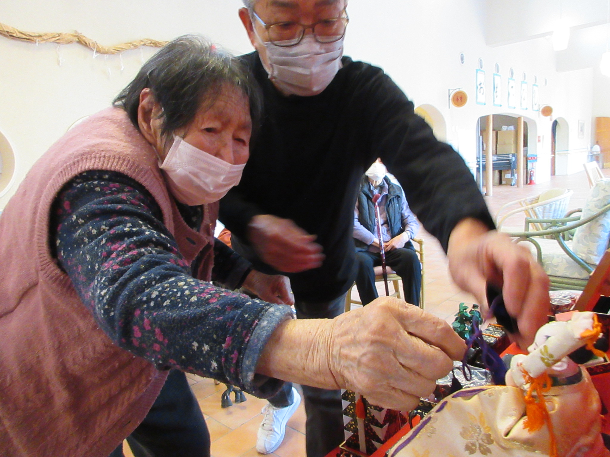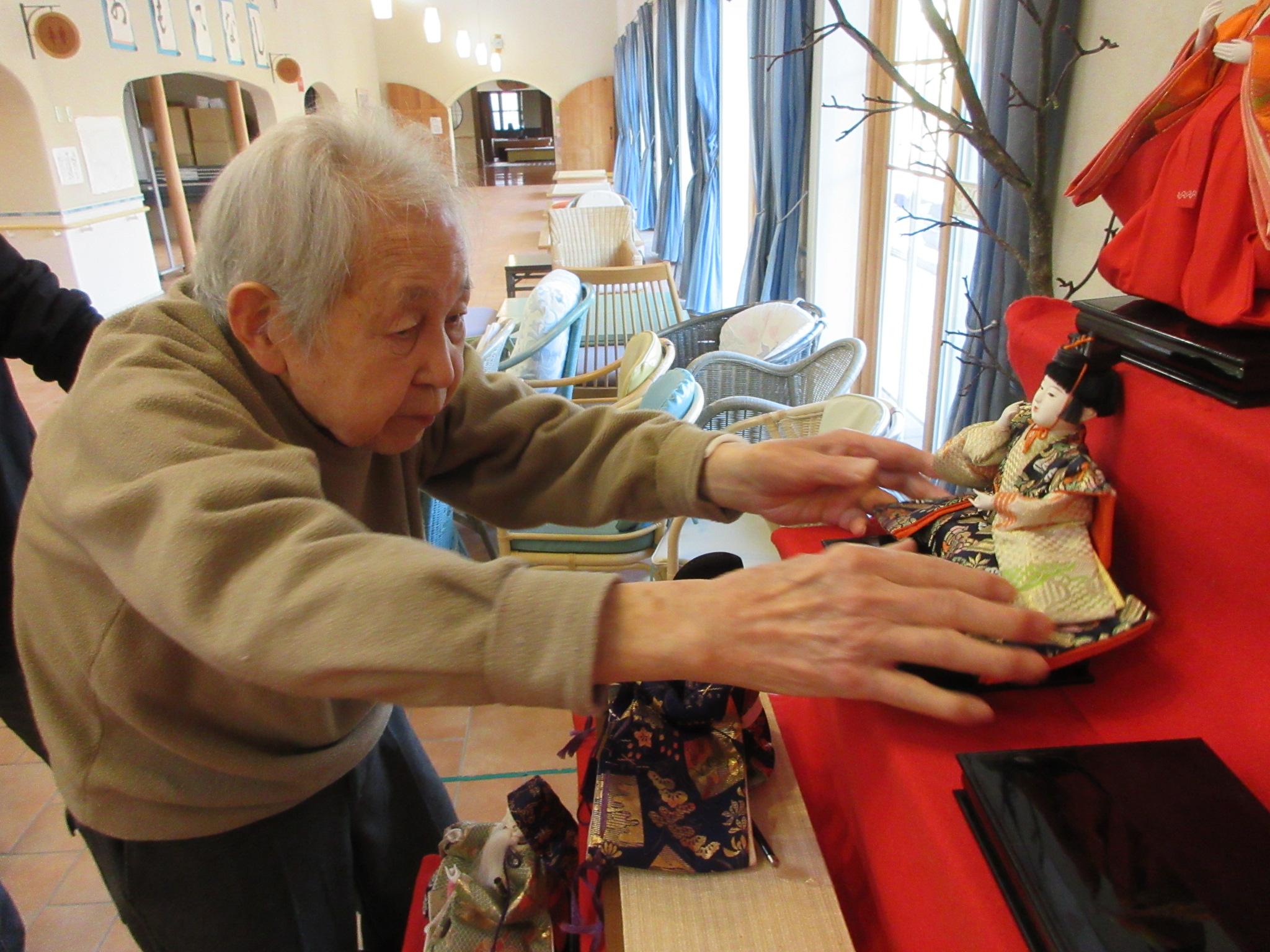 先日、お客様にもお手伝いいただき、ひな飾りをしました⭐