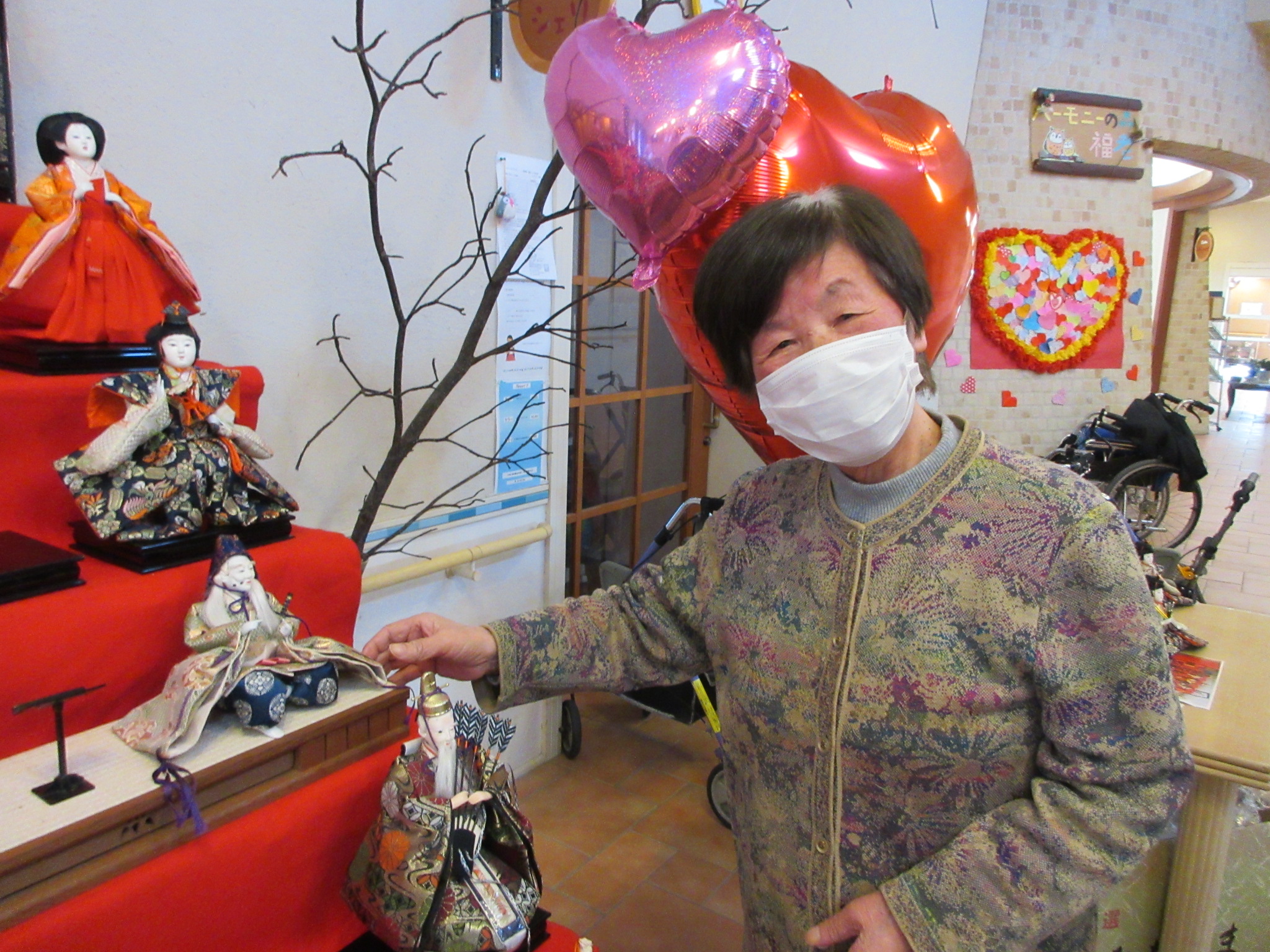 ひな壇が飾られたことによって、とても華やいだ雰囲気になりましたね✨