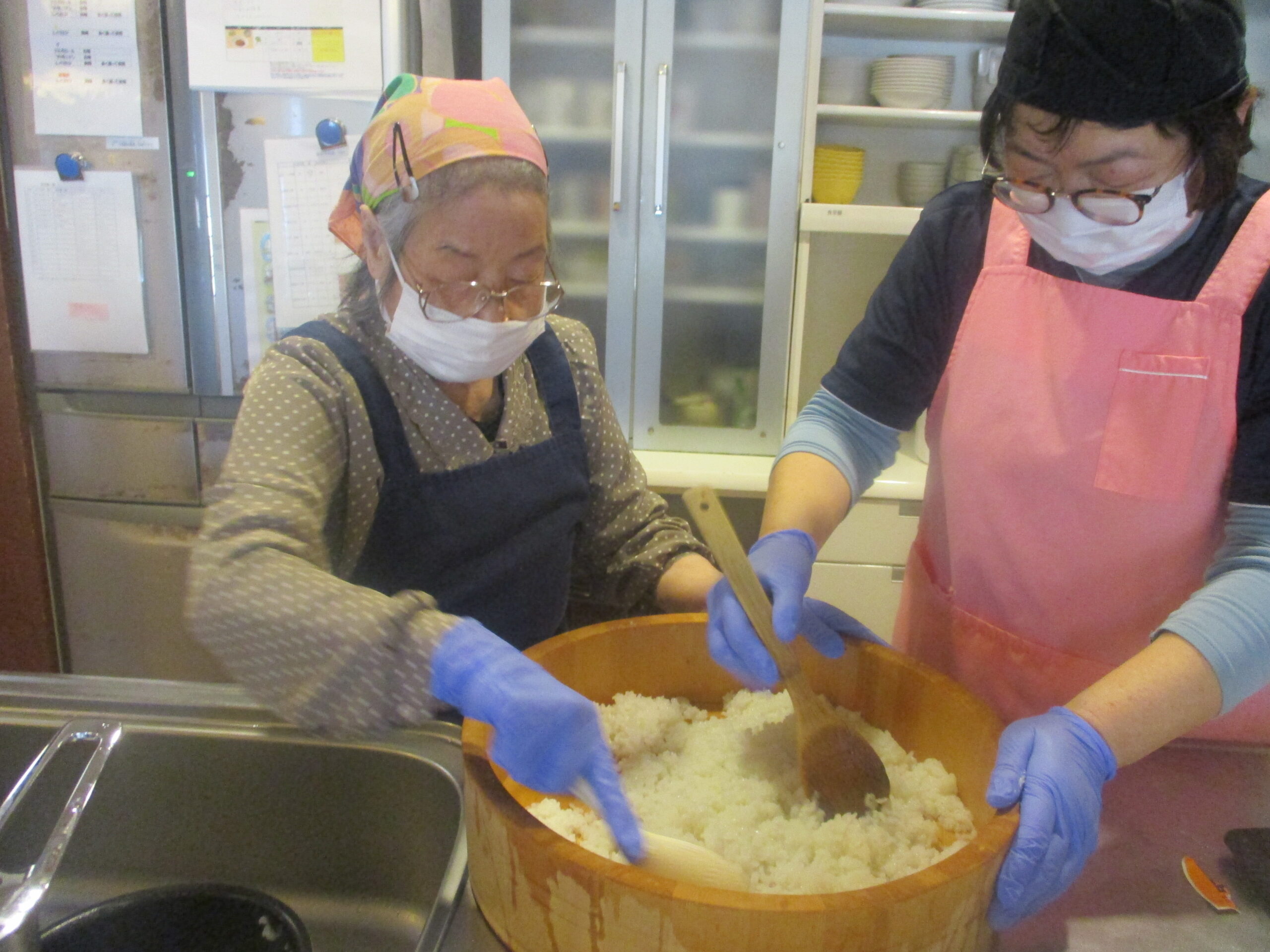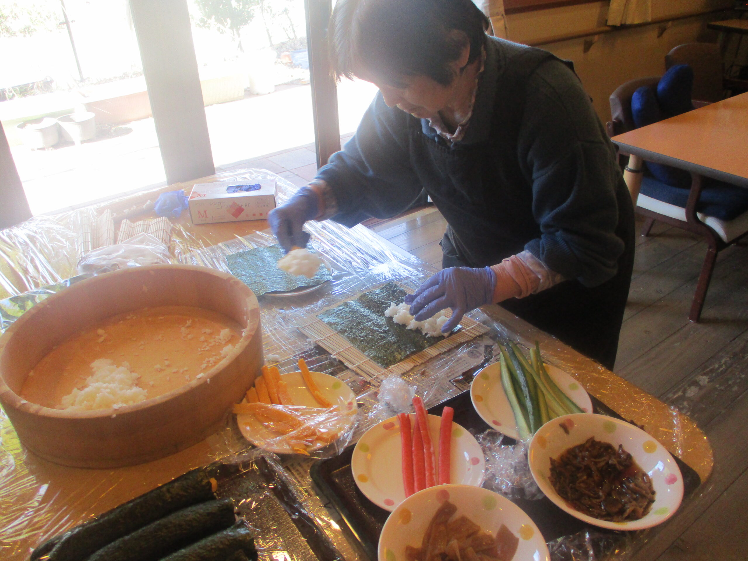 午前中は、恵方巻作りをお客様と一緒に行いました。