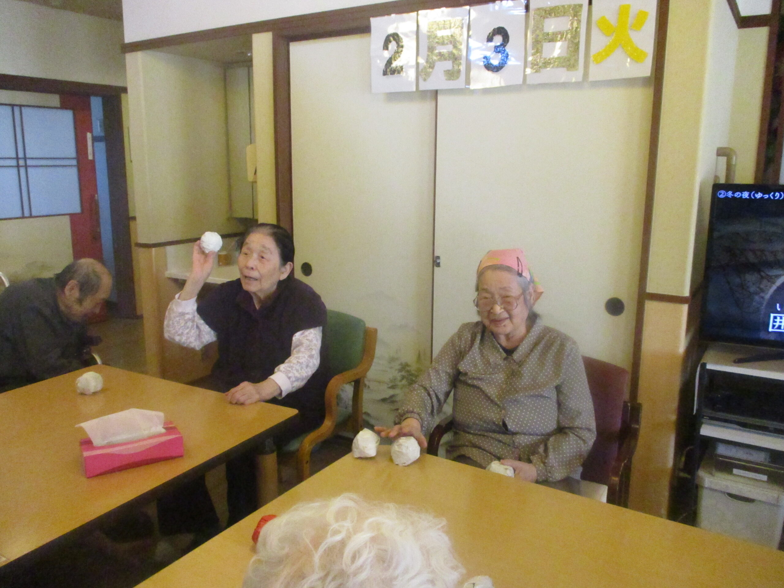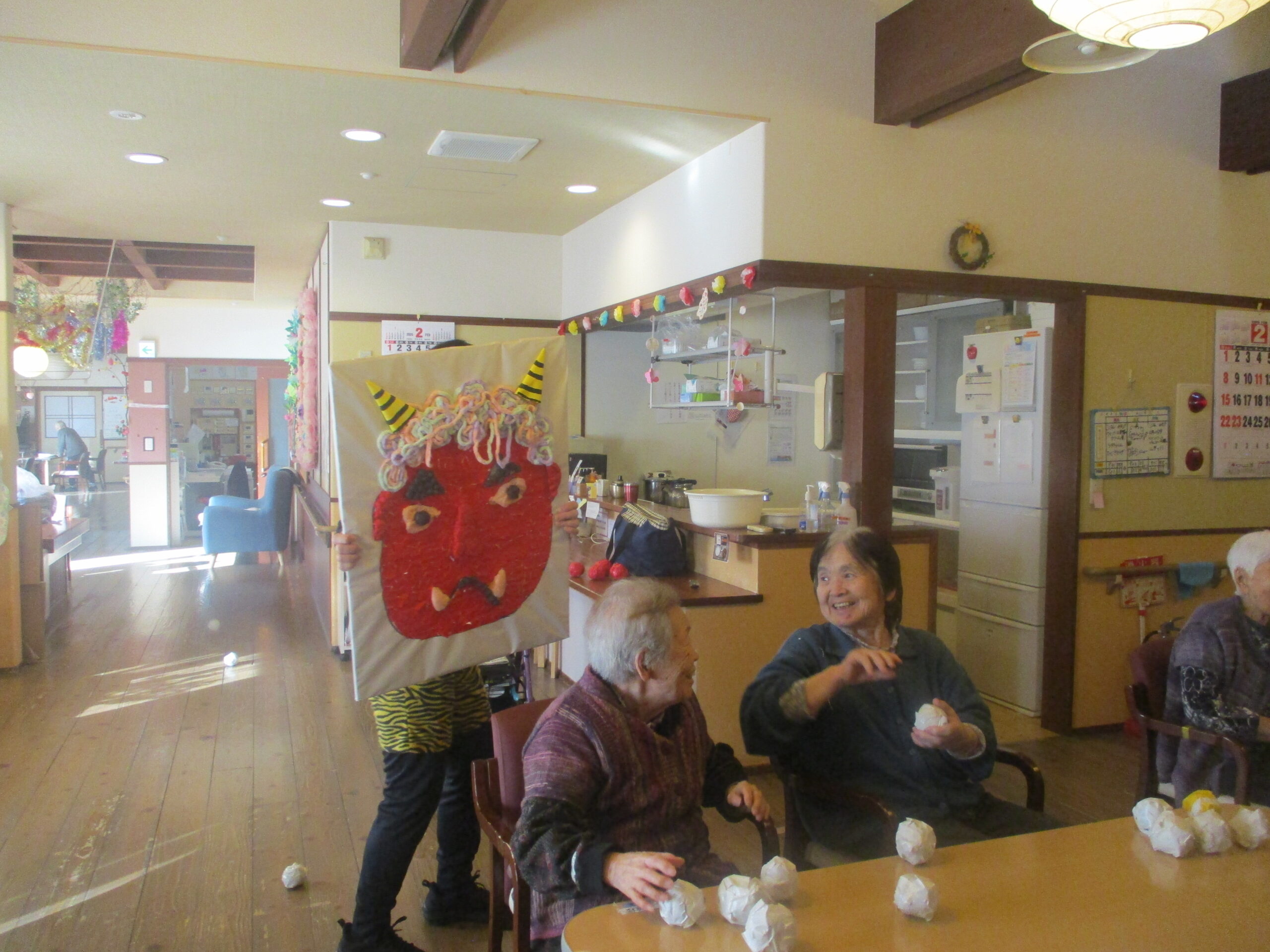 午後は、豆まきを行いました。