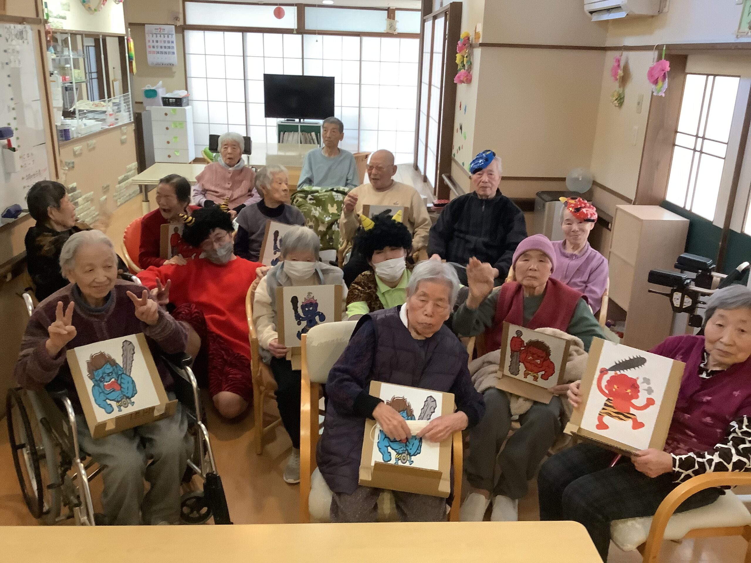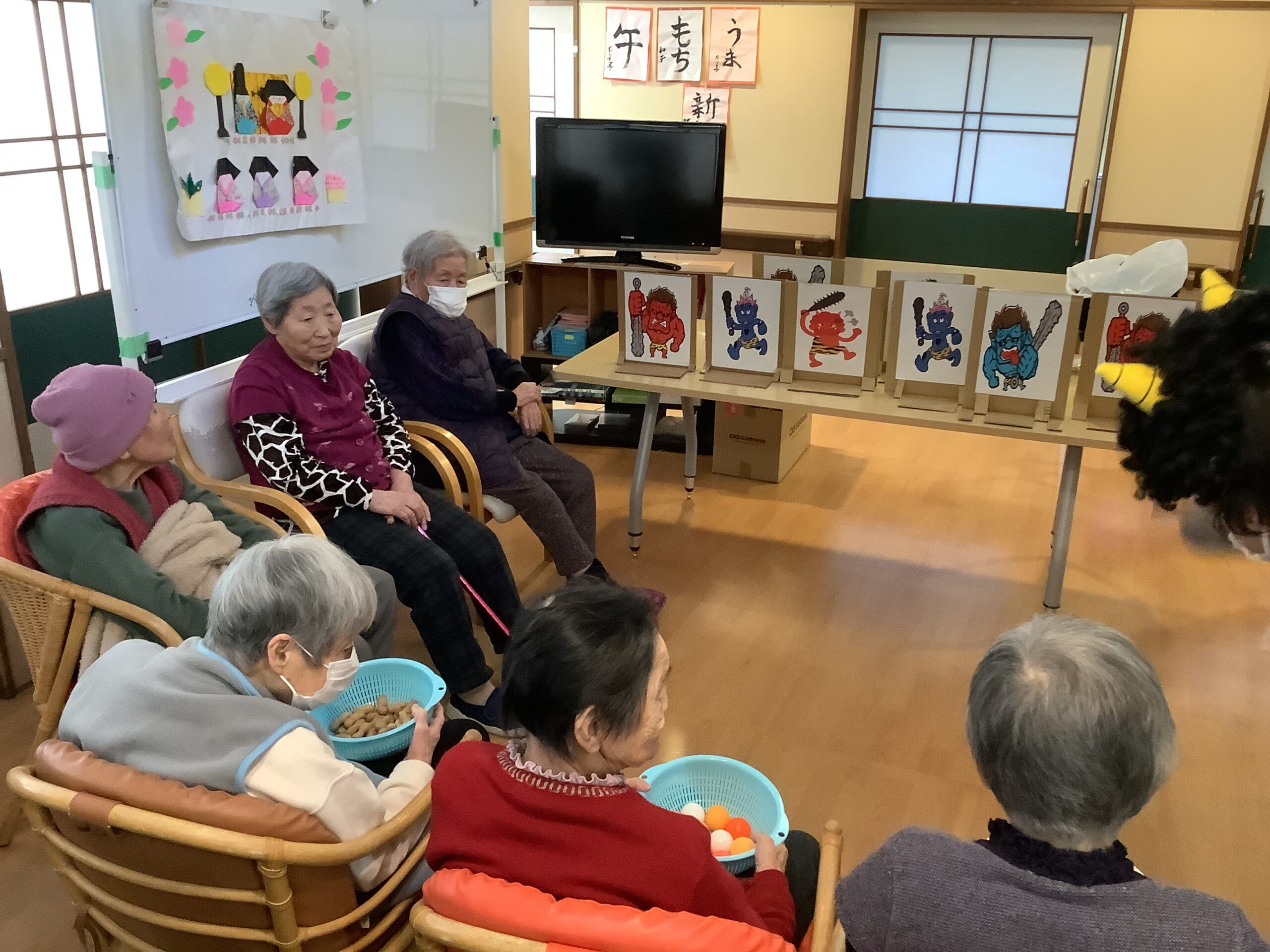 ハーモニー中田では、行事として「豆まき」を行いました。