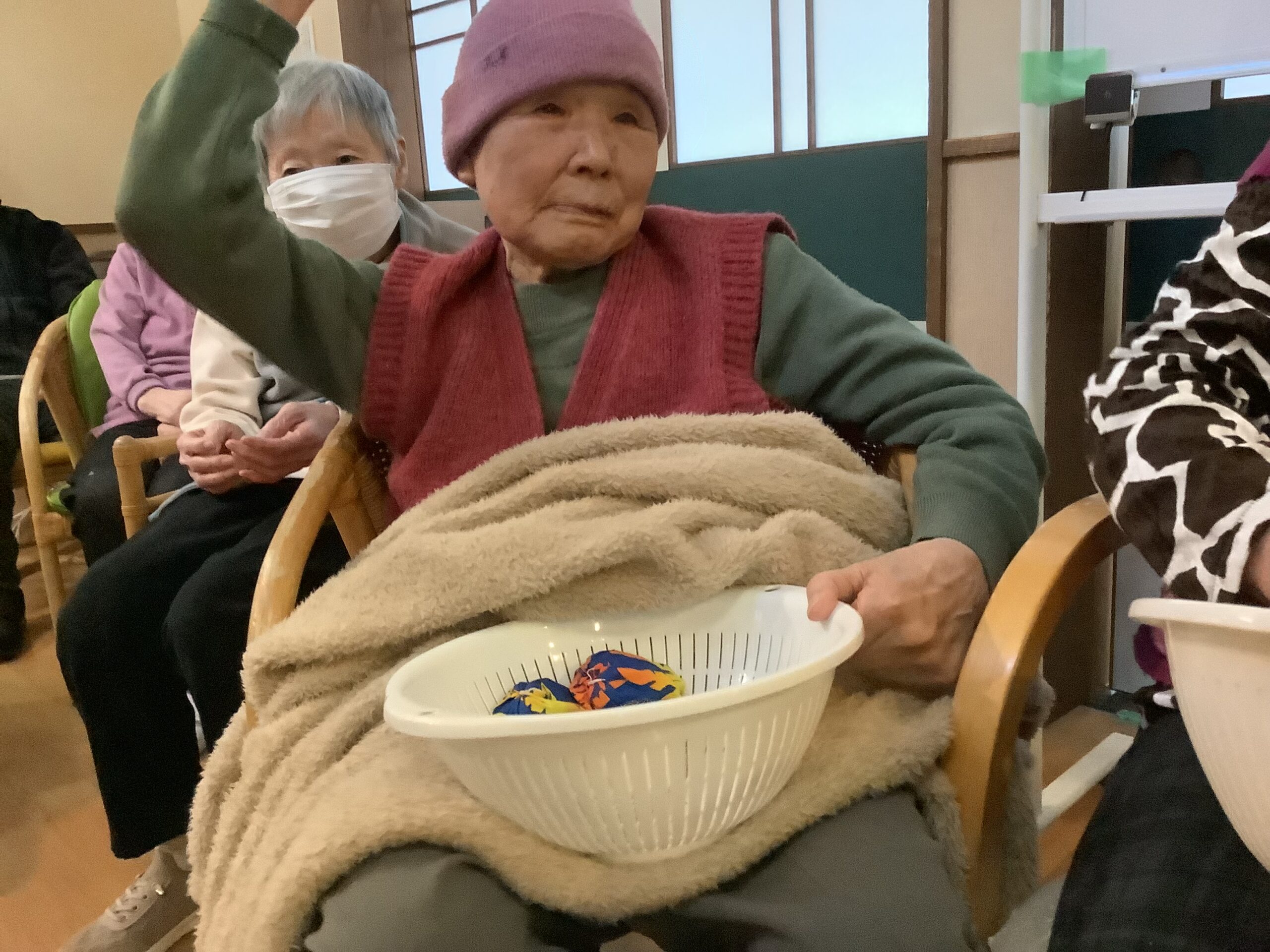 鬼の的に、お手玉や豆をぶつける豆まきイベントを行いました。