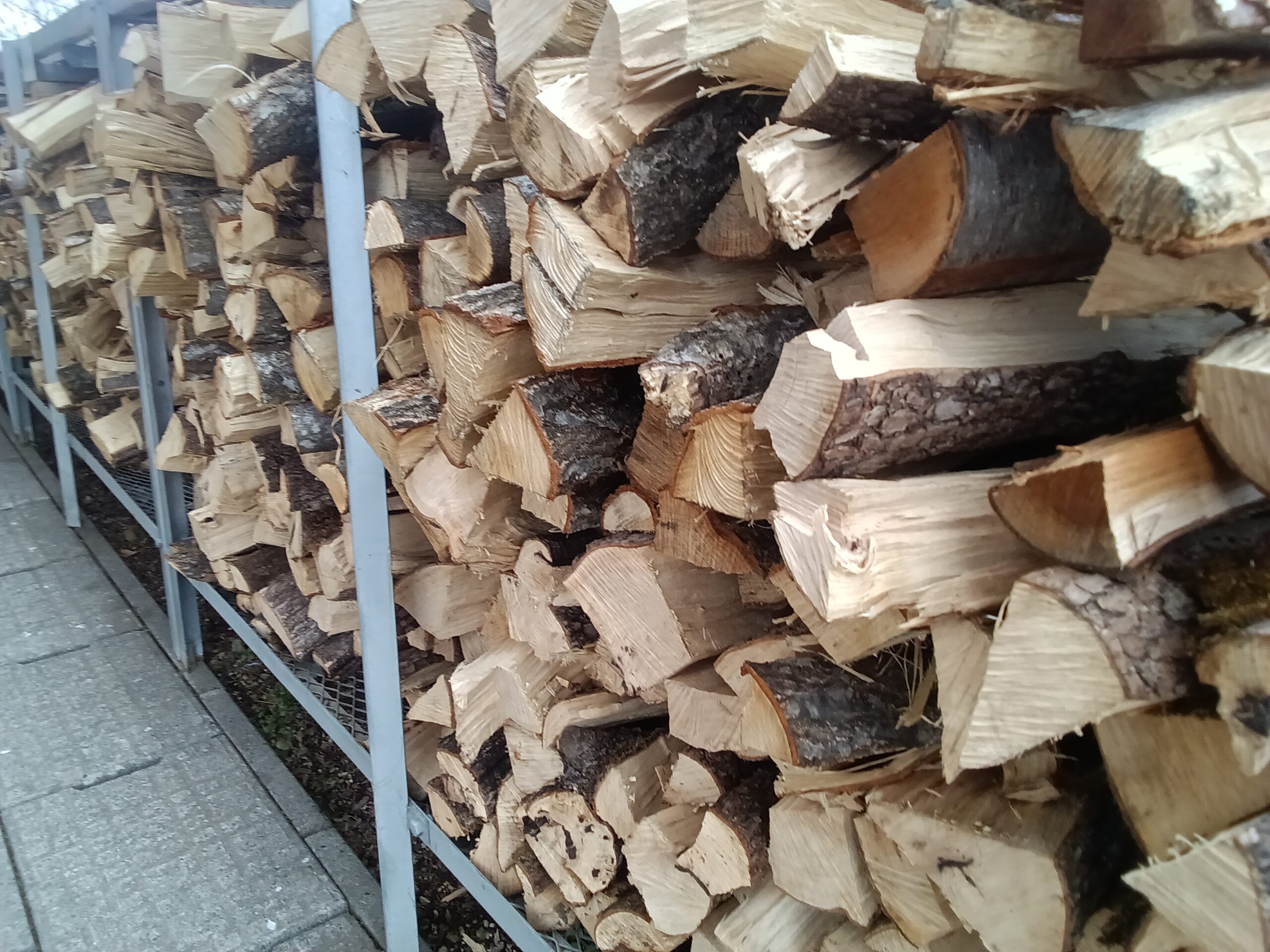 並べられた大量の薪は、冬を乗り切るための大切な資源。