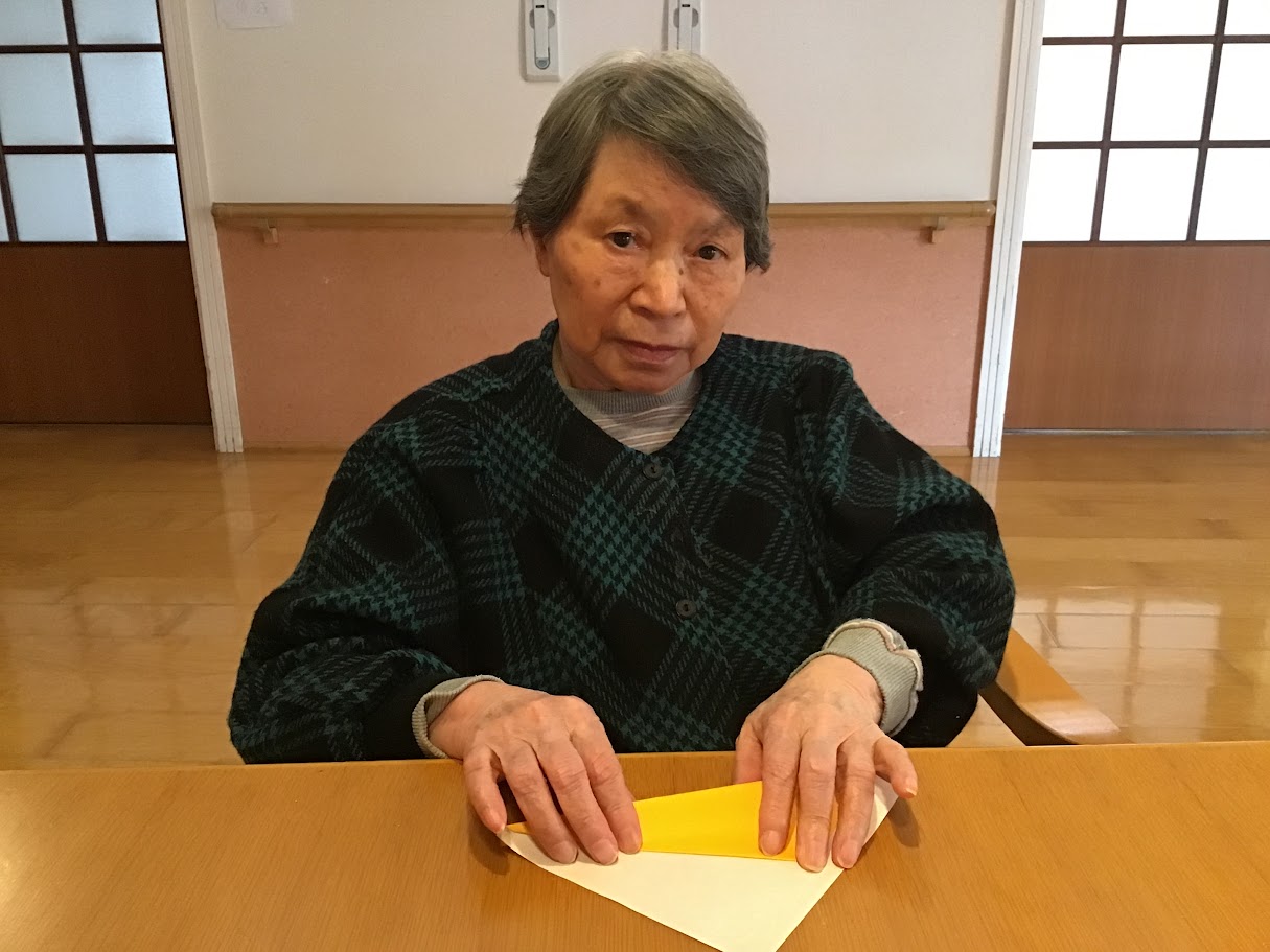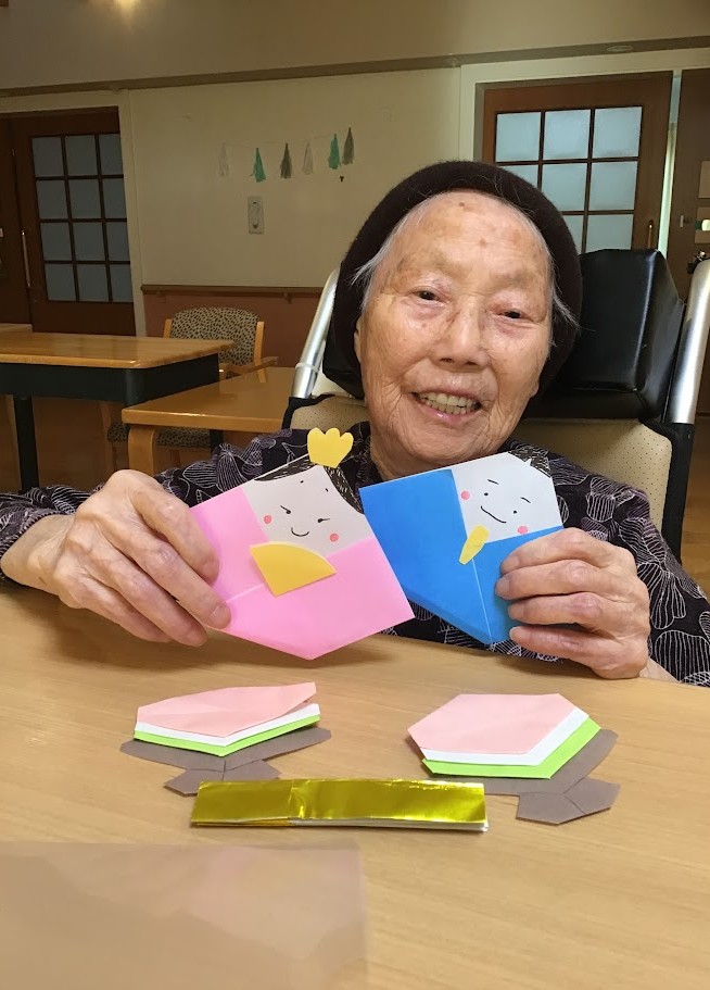 先日、ひなまつりに向けた準備として、お客様と一緒に折り紙を行いました。