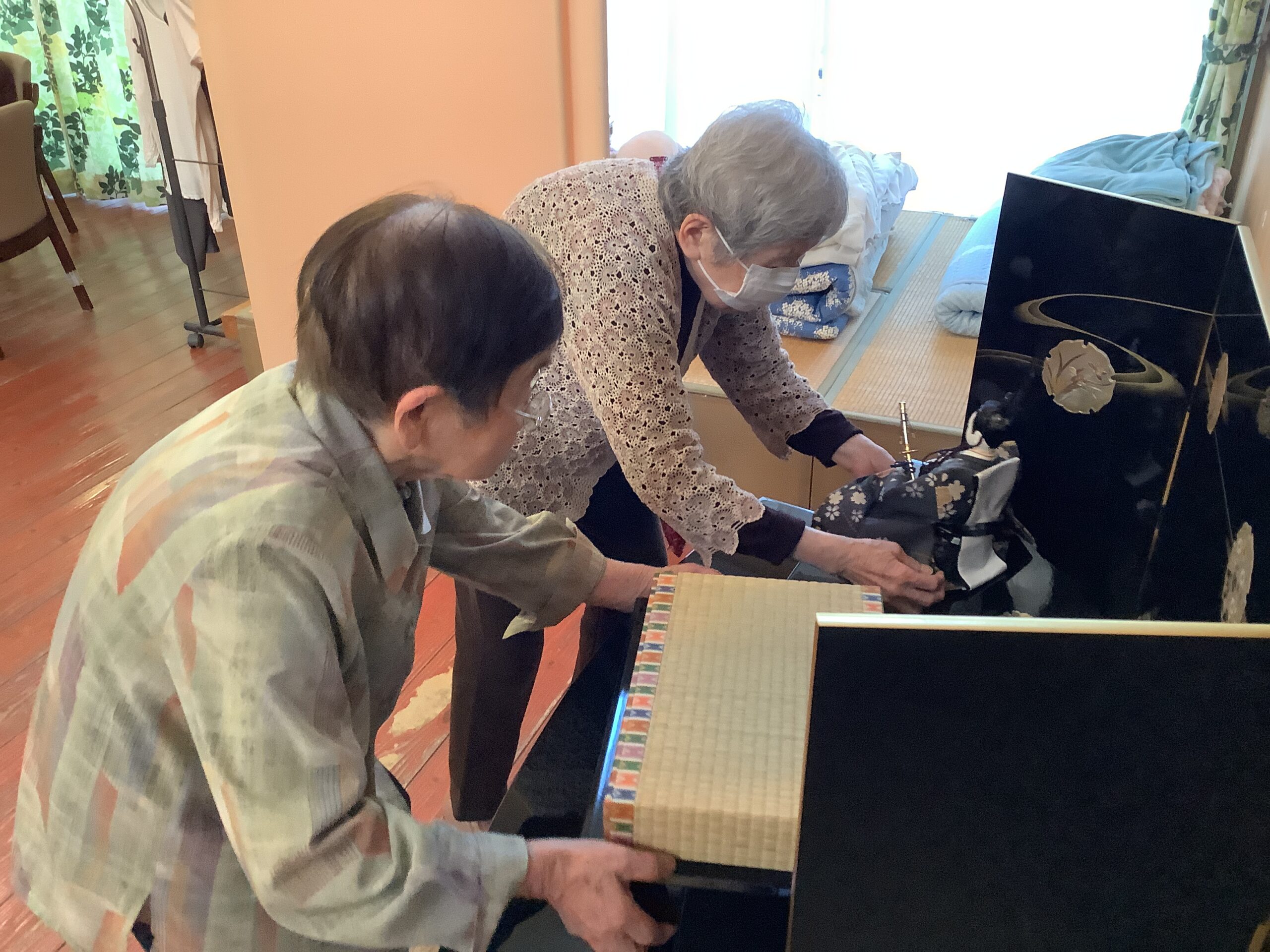 そんな中、ハーモニー松長ではお客様と一緒に「雛人形」を出しました‼︎