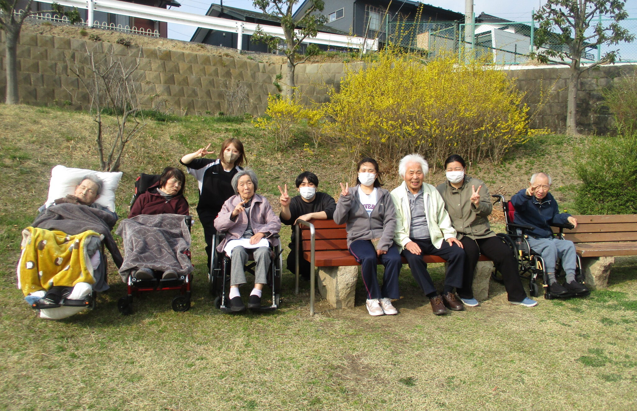 「天気が良いし、運動がてら外を歩きたい」「いくべ、いくべ!」と元気な声が上がり、皆でお散歩に出かけました!