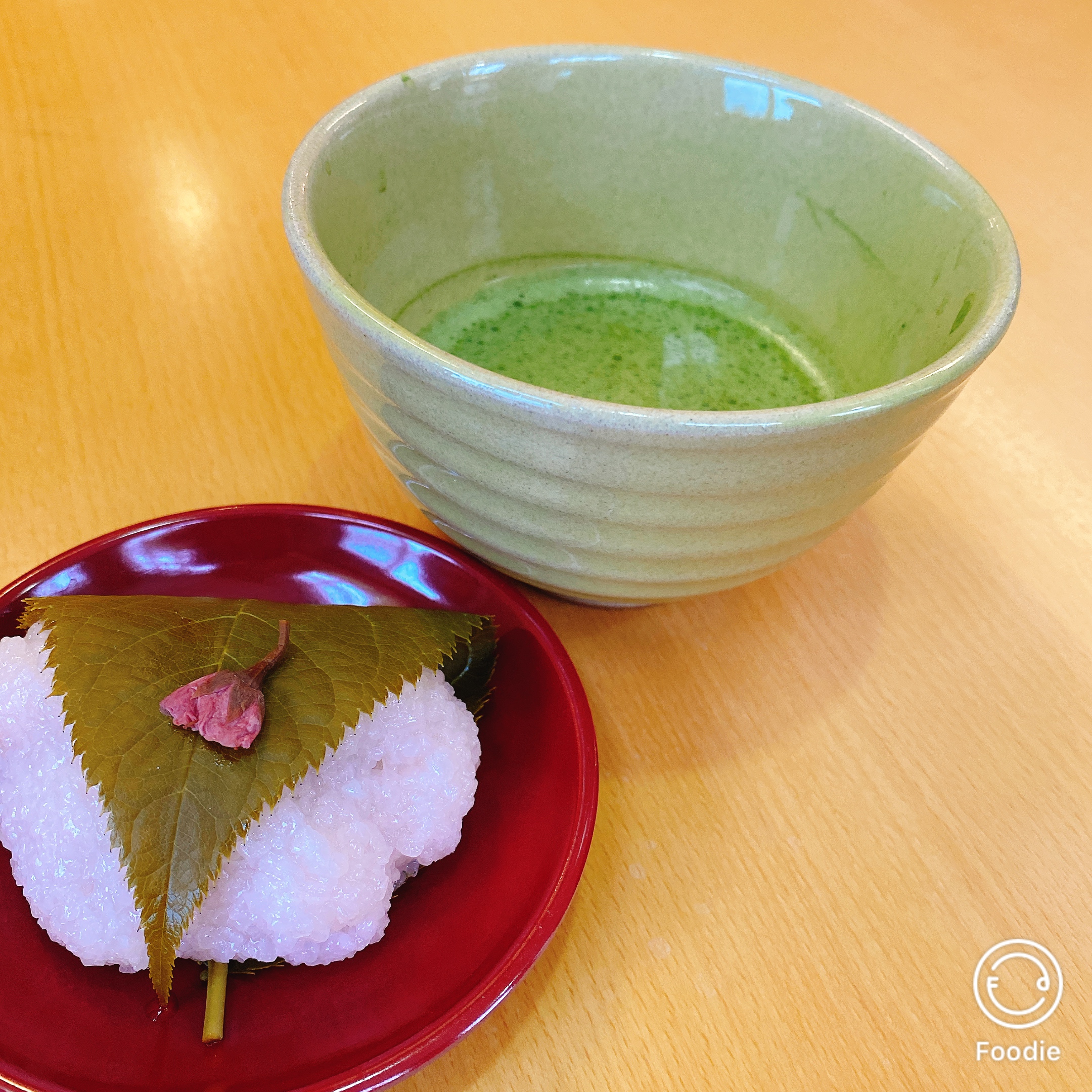 ハーモニーあいづのスタッフさんが一つ一つ手作りされた”桜餅”と”お抹茶”を頂きました😍
