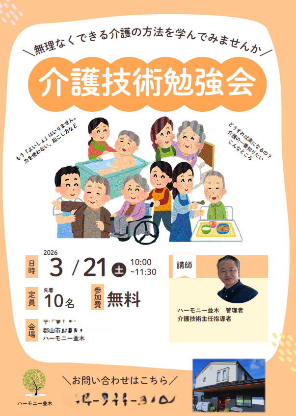 先日、ハーモニー並木にて**「無理なくできる介護技術勉強会」**を開催いたしました。