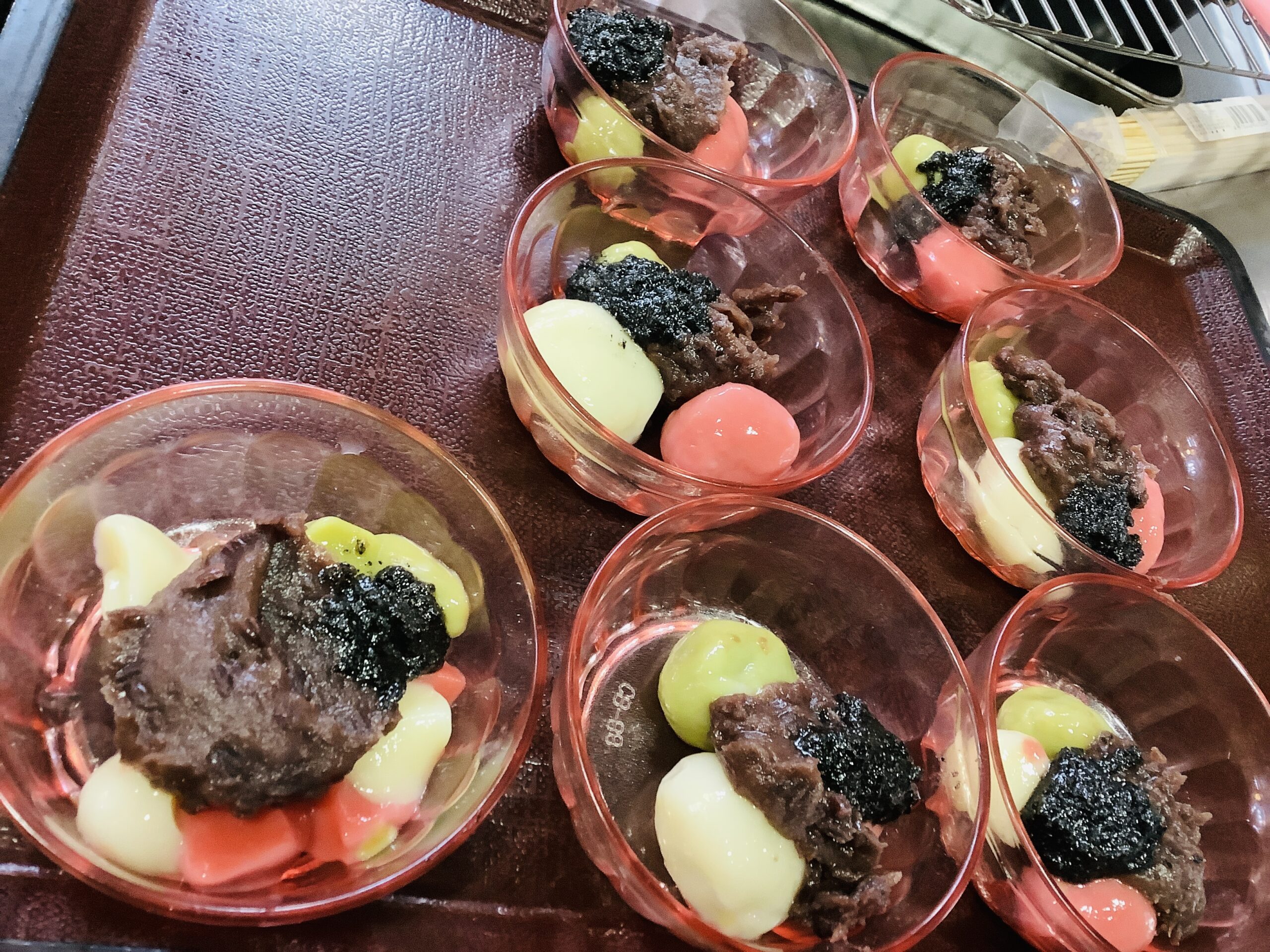 出来上がった3色団子を見て、お客様方からは『わぁ~!綺麗な色✨』『美味しそうだ~♡』と歓声が🎶