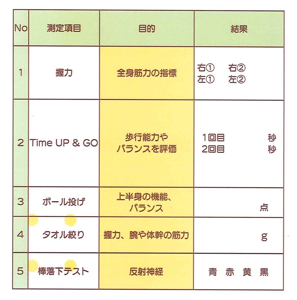 *タオル絞り *棒落下テスト の5項目に挑戦!!