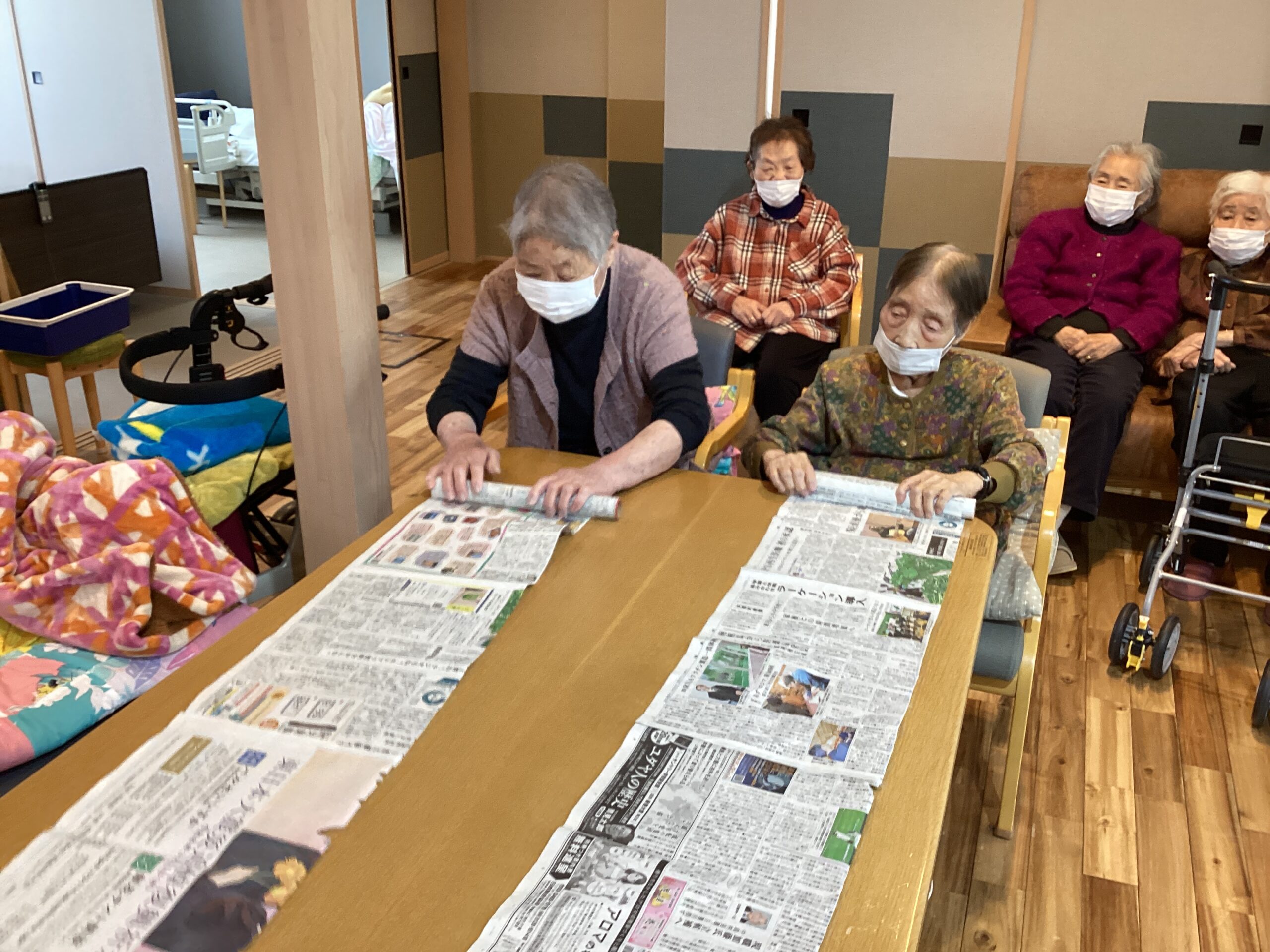 手や指をうまく使いながら筒に新聞を巻きつけていきます!